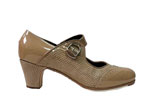 Gallardo ha realizado un nuevo diseño, el modelo Fátima Hebilla. Zapato de línea clásica pero con correa y hebilla de un tamaño superior a lo normal y combinación en la puntera y trasera. Este modelo se puede combinar con materiales de fantasía para darle más vistosidad. Fabricado en piel de bovino de primera calidad, filis antideslizantes y numerosos clavos en punta y tacón. Se fabrica en serie standard(a) y en serie Profesional(p).