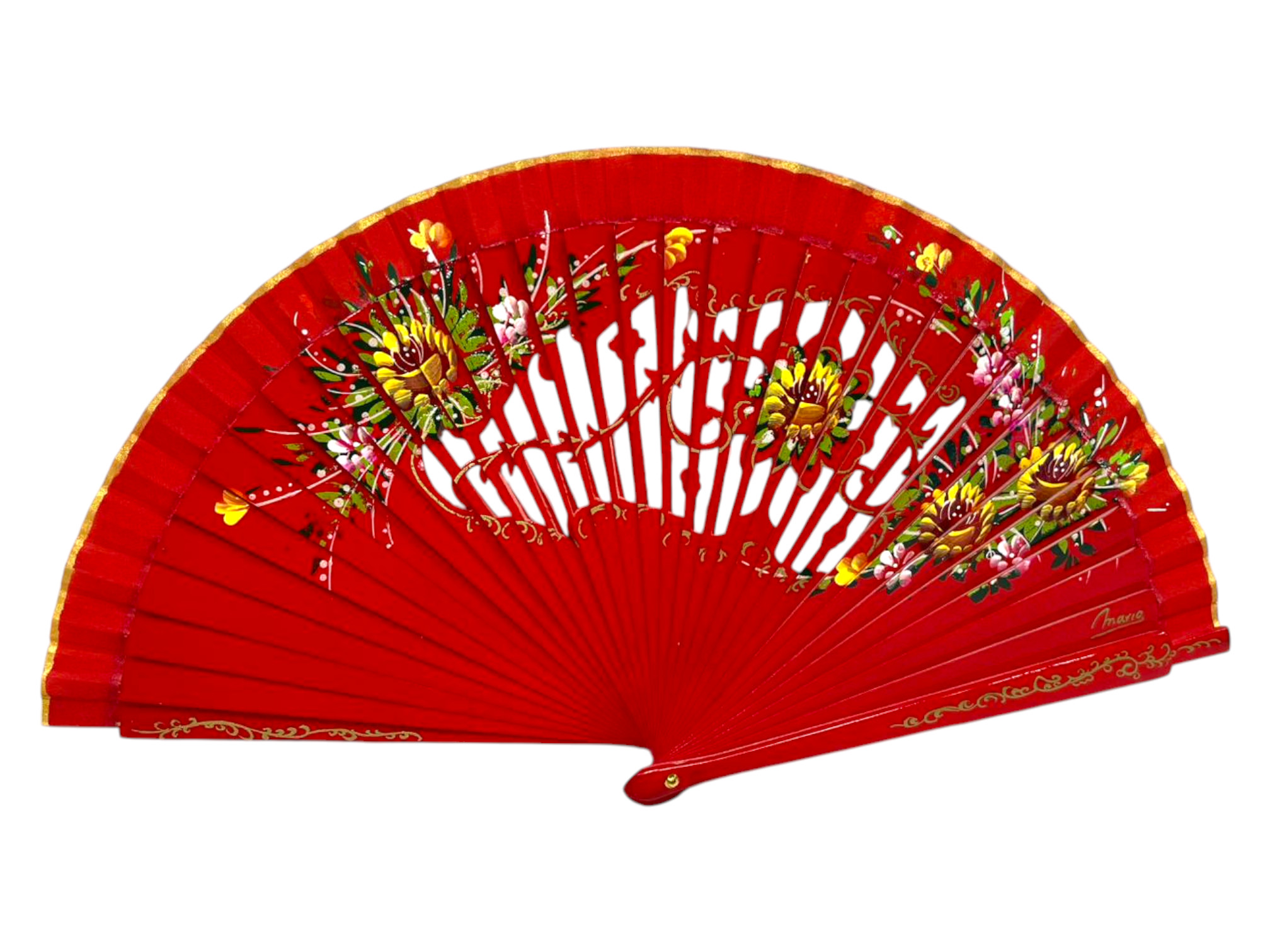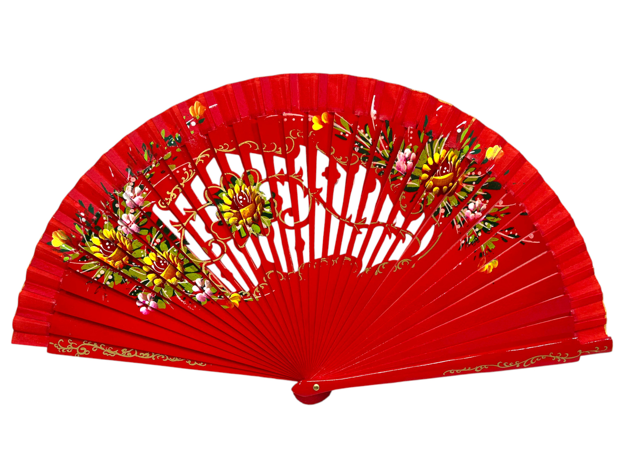 Abanico de madera calada floral pintado a mano ambas caras para verano y eventosRef. 1131