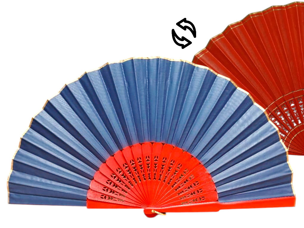 Este abanico pericón bicolor es una pieza original, elegante y muy característica dentro del mundo del baile flamenco profesional. Su diseño combina la intensidad del color rojo, presente siempre en una de las caras, con una segunda cara disponible en distintos colores a elegir, creando un efecto visual único y lleno de contraste en el movimiento.