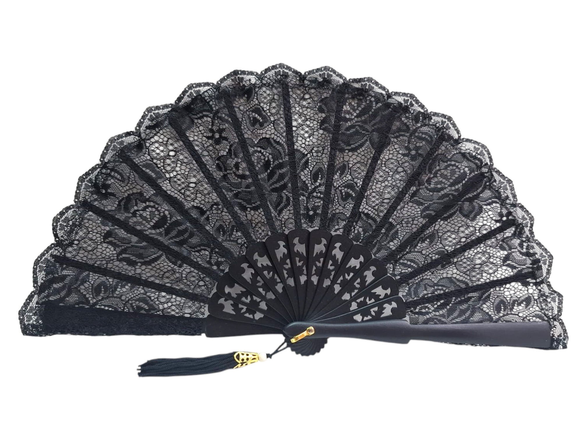 Abanico pequeño negro de encaje para bolso | Abanico elegante de ceremonia