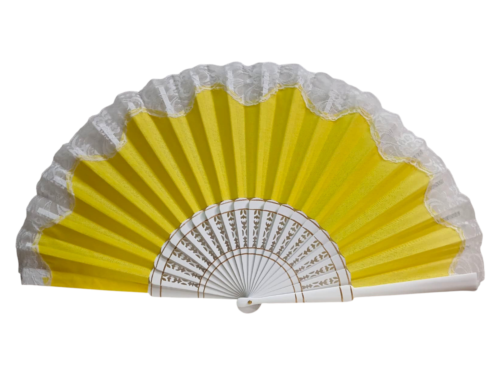 Abanico pericón flamenco con encaje y varillas caladas blancas – 60 × 33 cm