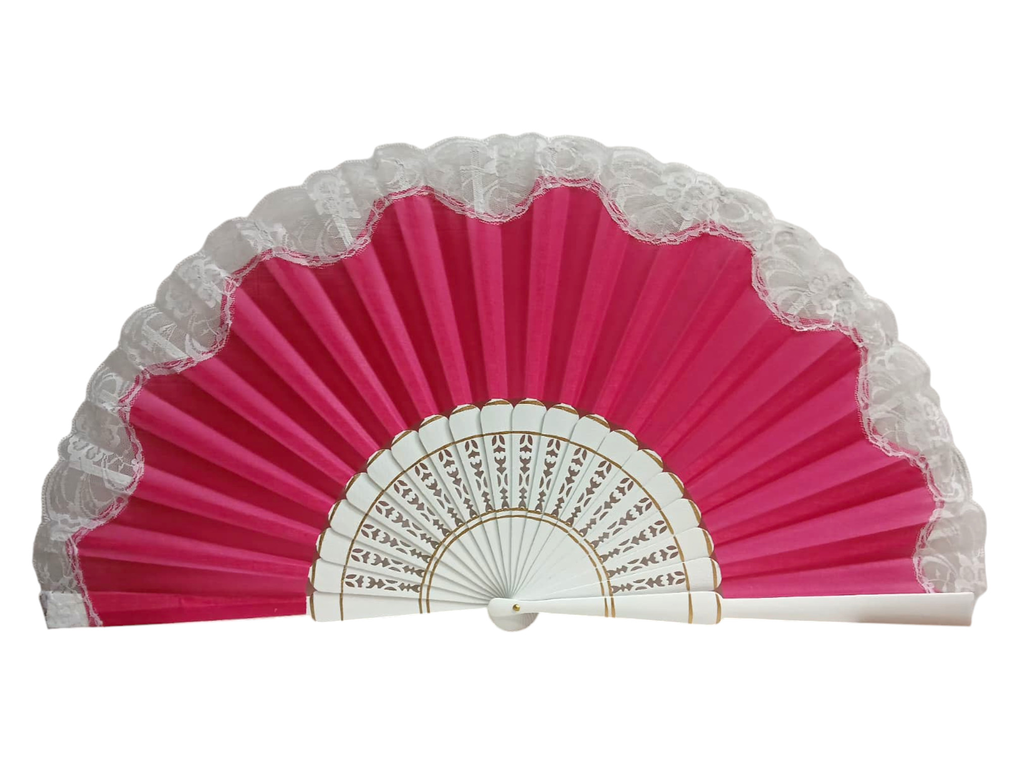 Abanico pericón flamenco con encaje y varillas caladas blancas – 60 × 33 cm