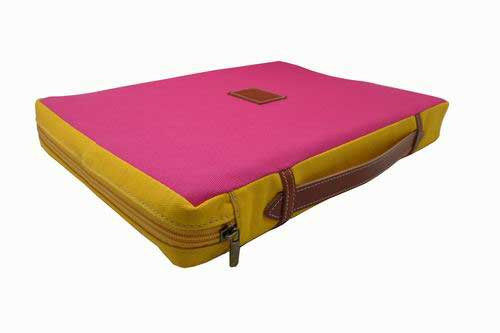 Coussin aux couleurs fuchsia et jaune rappelant la cape des toreros (capote de brega). Ce coussin en toile est très pratique car il dispose d’un zip et d’une poignée en cuir pour être emmené partout, à une corrida ou un événement sportif par exemple afin que vous soyez confortablement assis.