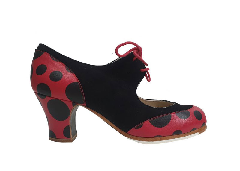 Marvellous flamenco shoes for dancers. This model "Cordoneria" is made of suede, fastened on the top side with a shoelace.