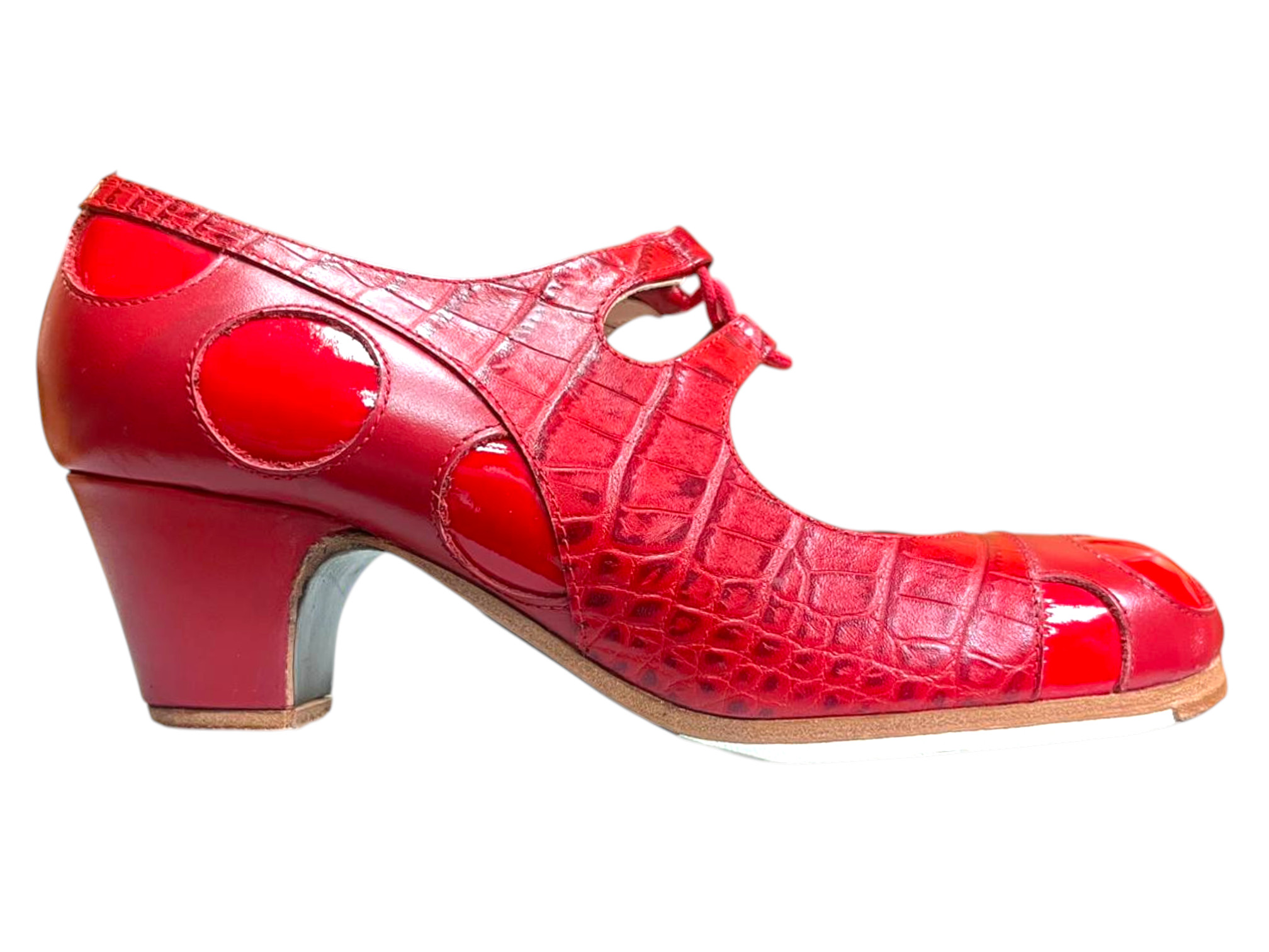Hechizo Zapato profesional para baile flamenco con planta de cuero, filis con acabado antideslizante, suela y planta de cuero cosidos a mano, clavos en puntera y tacón, y forro de piel.