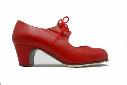 フラメンコダンス用シューズ, スエードを使って製作され、トップにシューズ紐が取り付けられております。