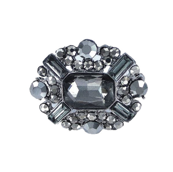 Broche de bisutería ovalado con piedra central trapecio tallada elegancia y estilo único.