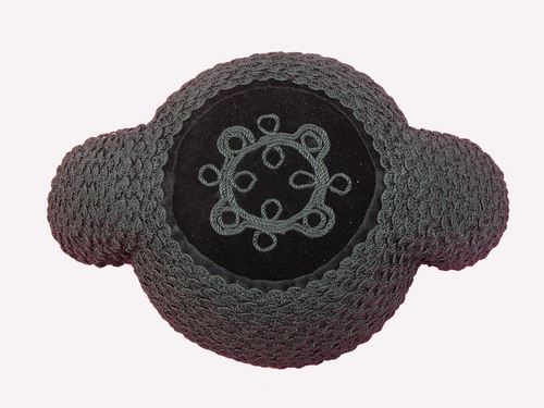 こちらはオーセンティックなモンテラです。モンテラハットは闘牛士やその見習いたちによって使用され、19世紀までは3つの端の付いたものを使用していましたが。それ以降は“髪”に似た素材のモンテラを使うようになりました。