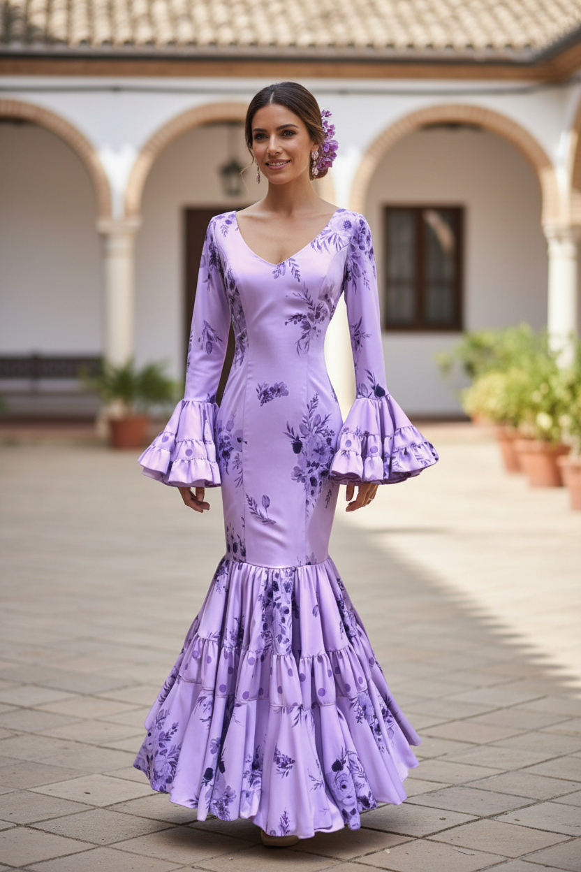 Flamenco dress handcrafted in Spain, made following the traditional patterns of flamenco fashion and taking care of every detail of the manufacturing process. A dress designed to enhance the figure, provide movement, and reflect the essence of the gypsy dress, combining tradition, elegance, and comfort.