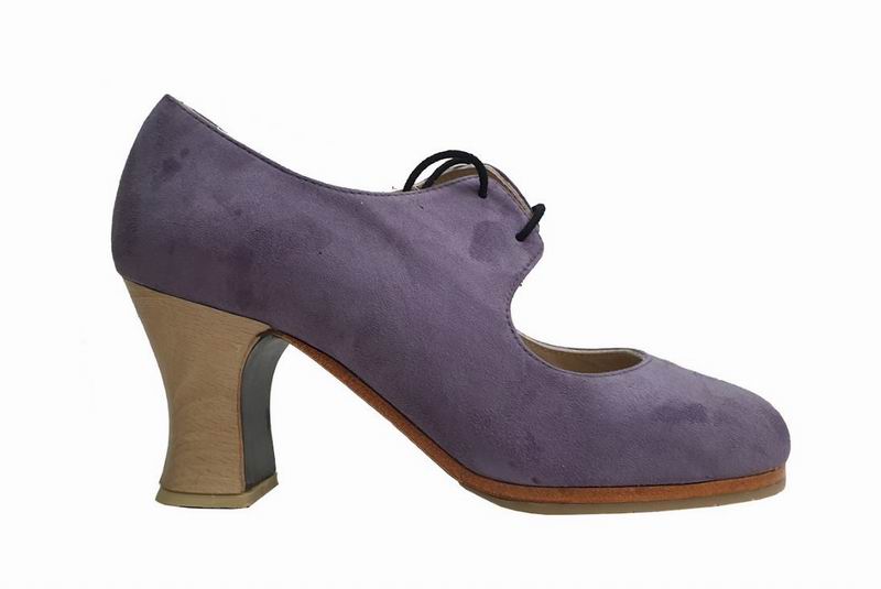 フラメンコダンス用シューズ, スエードを使って製作され、トップにシューズ紐が取り付けられております。