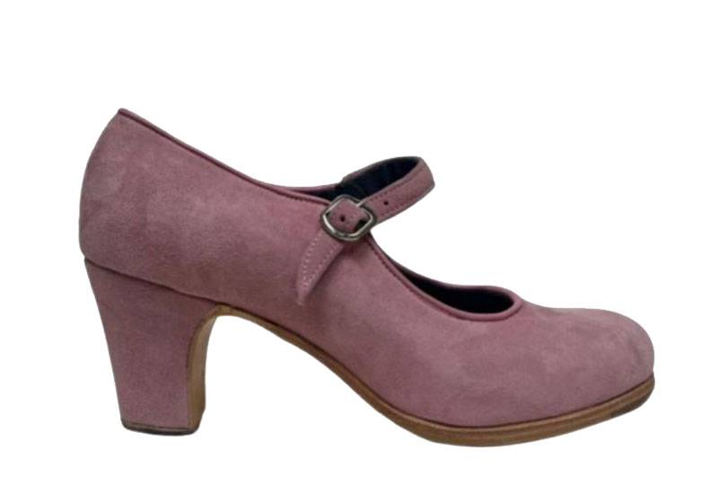 Zapato clásico Gallardo que cuenta con correa y hebilla para mejor sujeción en la parte del talón. Fabricado en colores variados, tiene suela de cuero, empeine y forro de piel, tacón de madera estándar de 5 cm, filis de goma en blanco o negro y clavos en la punta y el tacón. Este modelo es el más solicitado por su línea y comodidad.