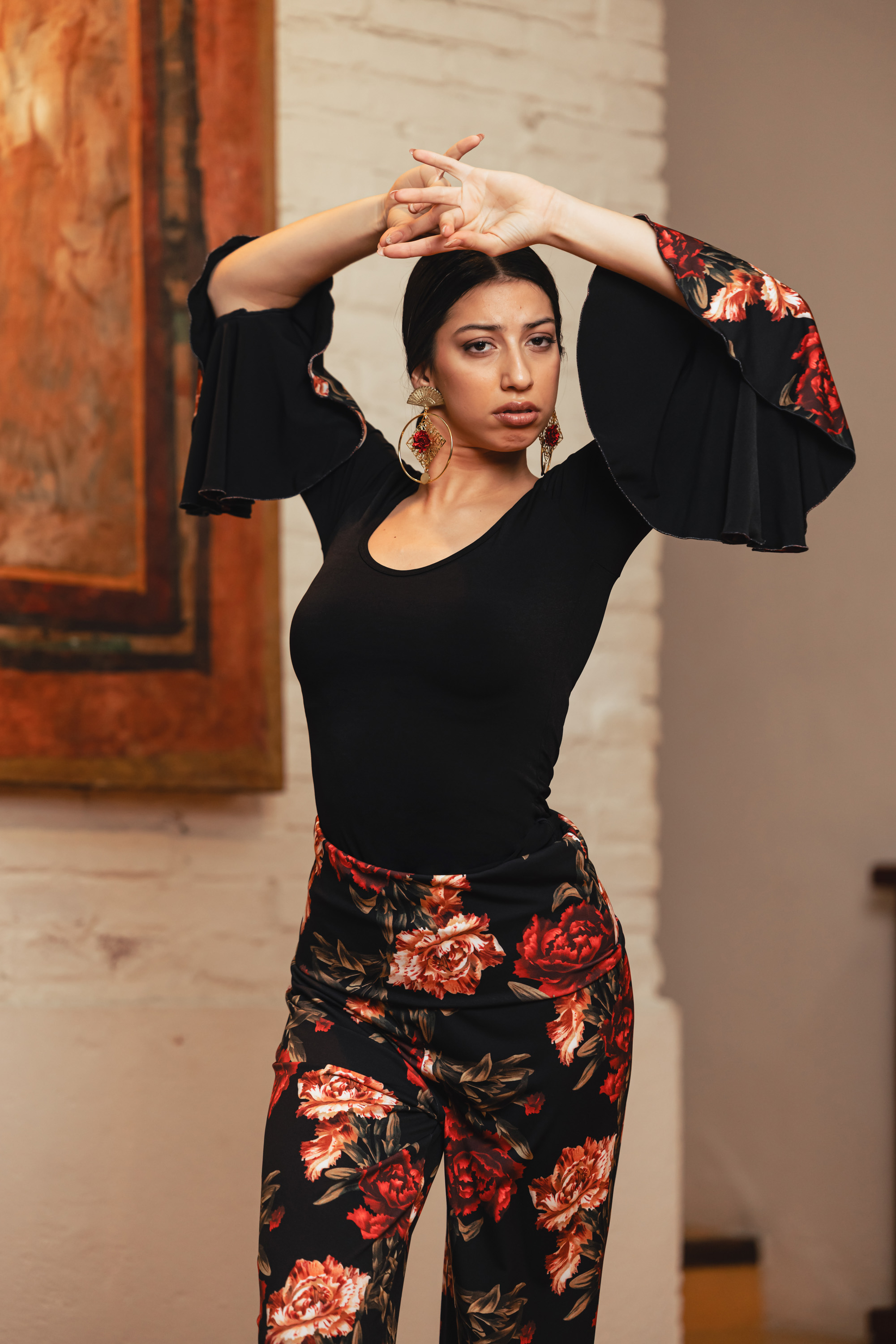 *L'imprimé sélectionné s'applique aux volants des manches, le corps étant toujours de couleur noire.
