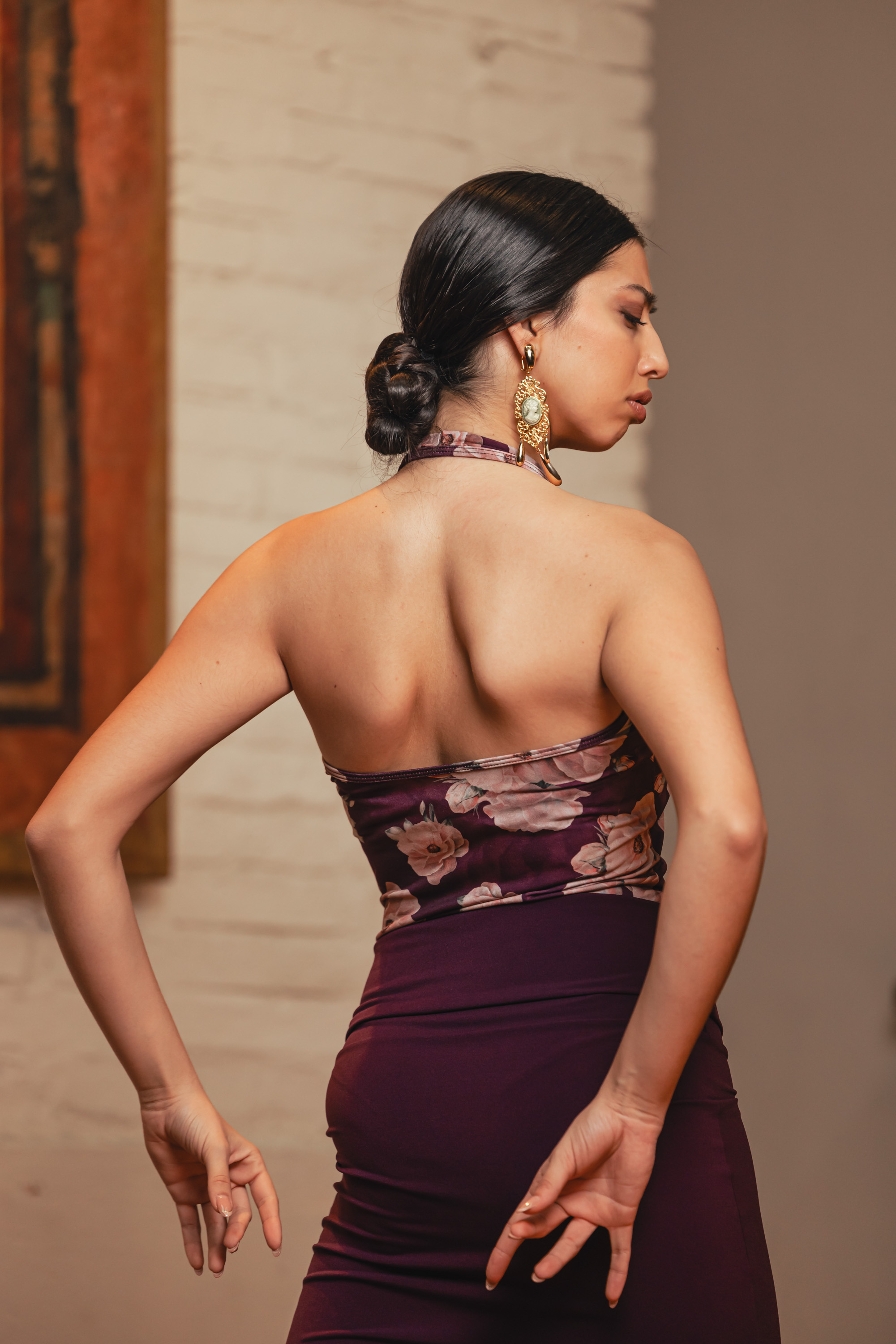 Top court à longueur de hanches avec bretelles. Ajusté avec un décolleté en V.