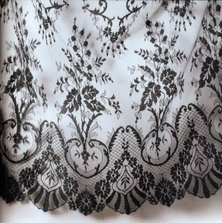 Mantilla confeccionada en floche (encaje intermedio, mezcla de chantilly y blonada) de una sola pieza, sin costuras, y compuesta en un 20% de nylon y un 80% de rayón. Disponible en crema.