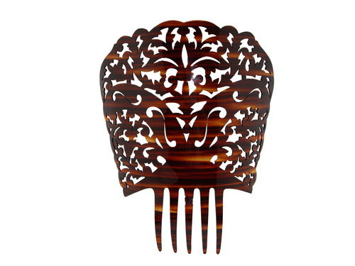 Mantilla confeccionada en floche (encaje intermedio, mezcla de chantilly y blonada) de una sola pieza, sin costuras, y compuesta en un 20% de nylon y un 80% de rayón. Disponible en negro.