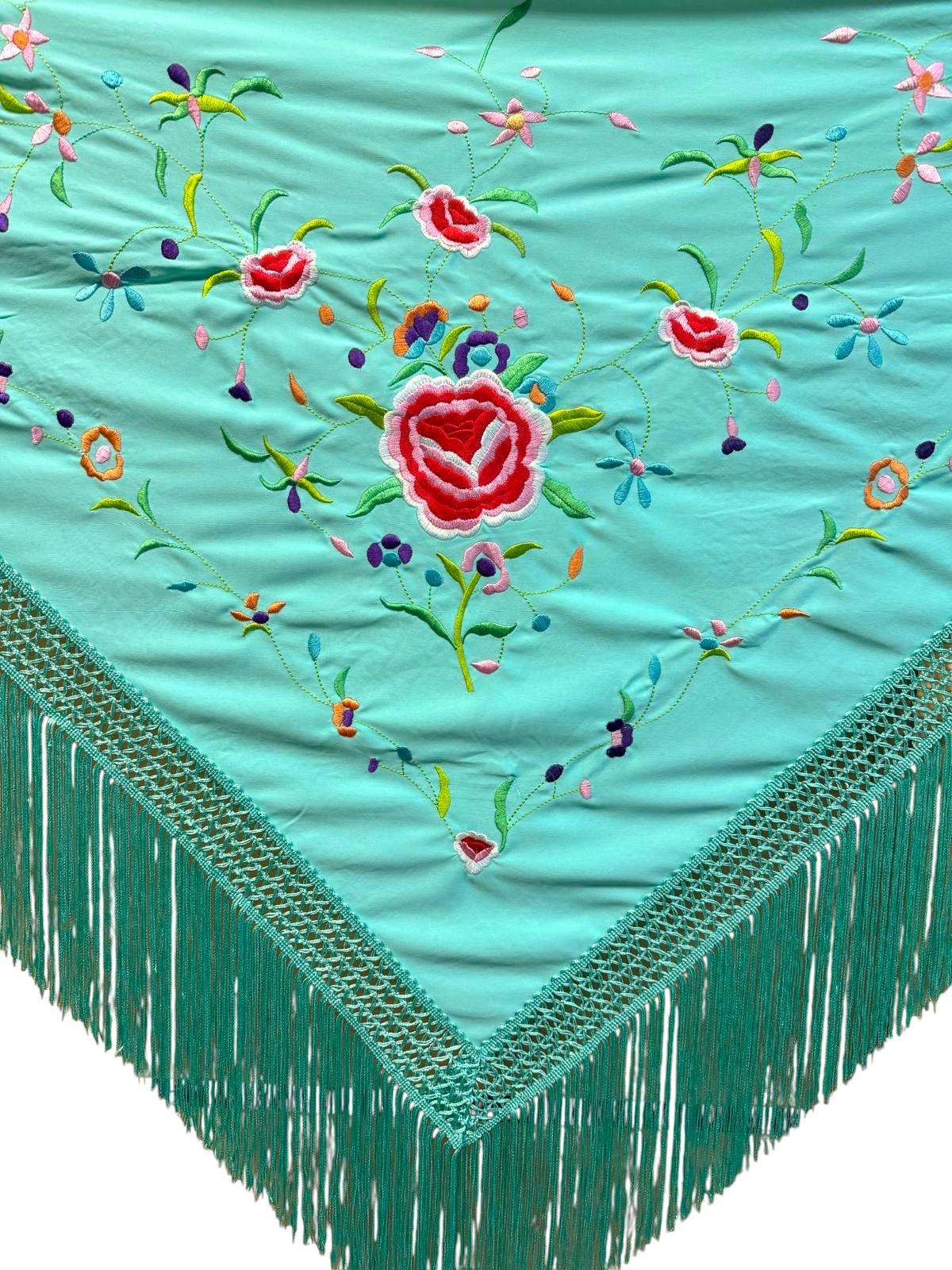 Discover our affordable flamenco shawl, an ideal option to complete any flamenco look without sacrificing style. Made from 100% polyester and machine embroidered, this model combines lightness, comfort, and excellent value for money, becoming one of the favorites for fairs, pilgrimages, shows, and dance academies.