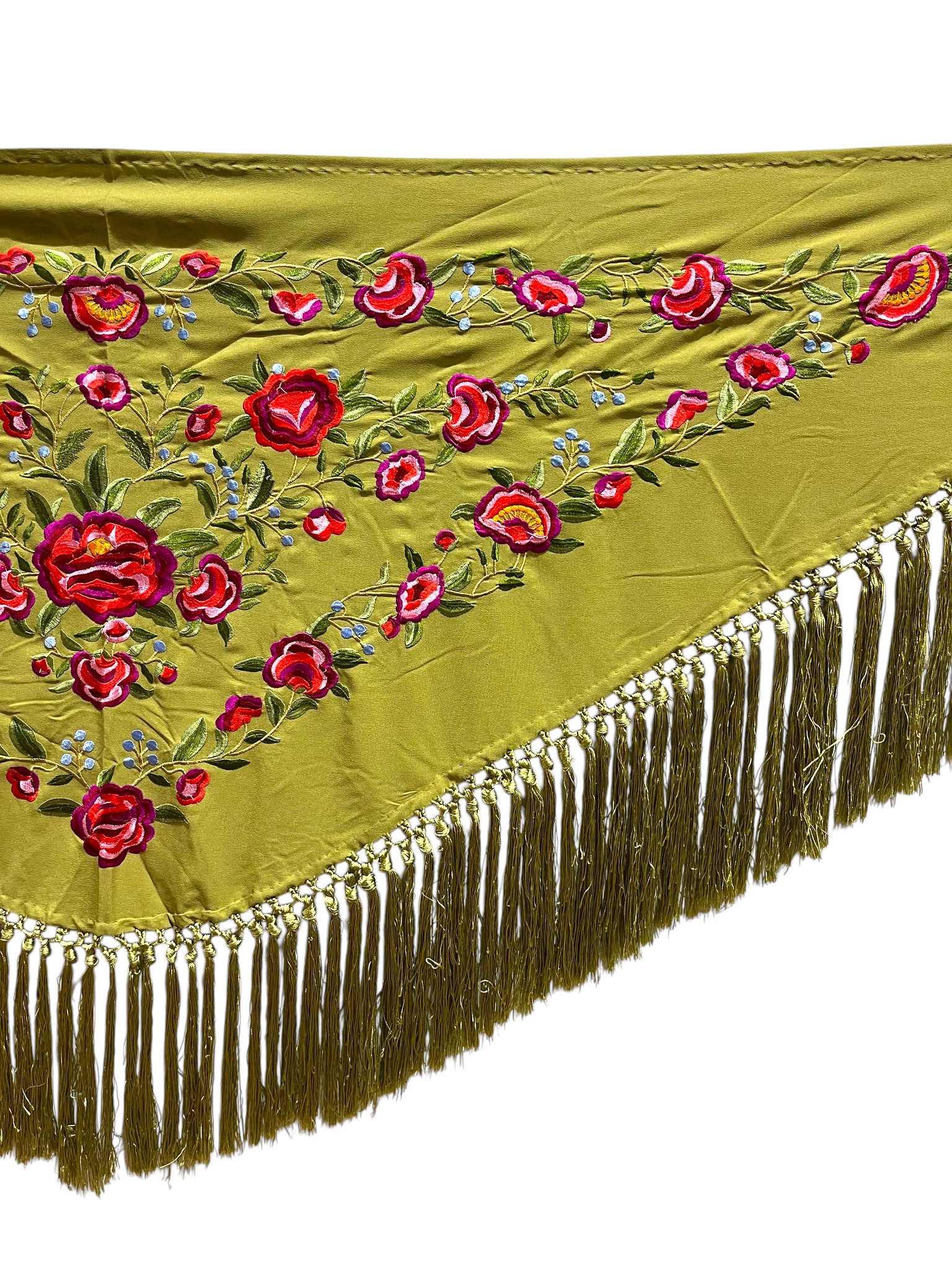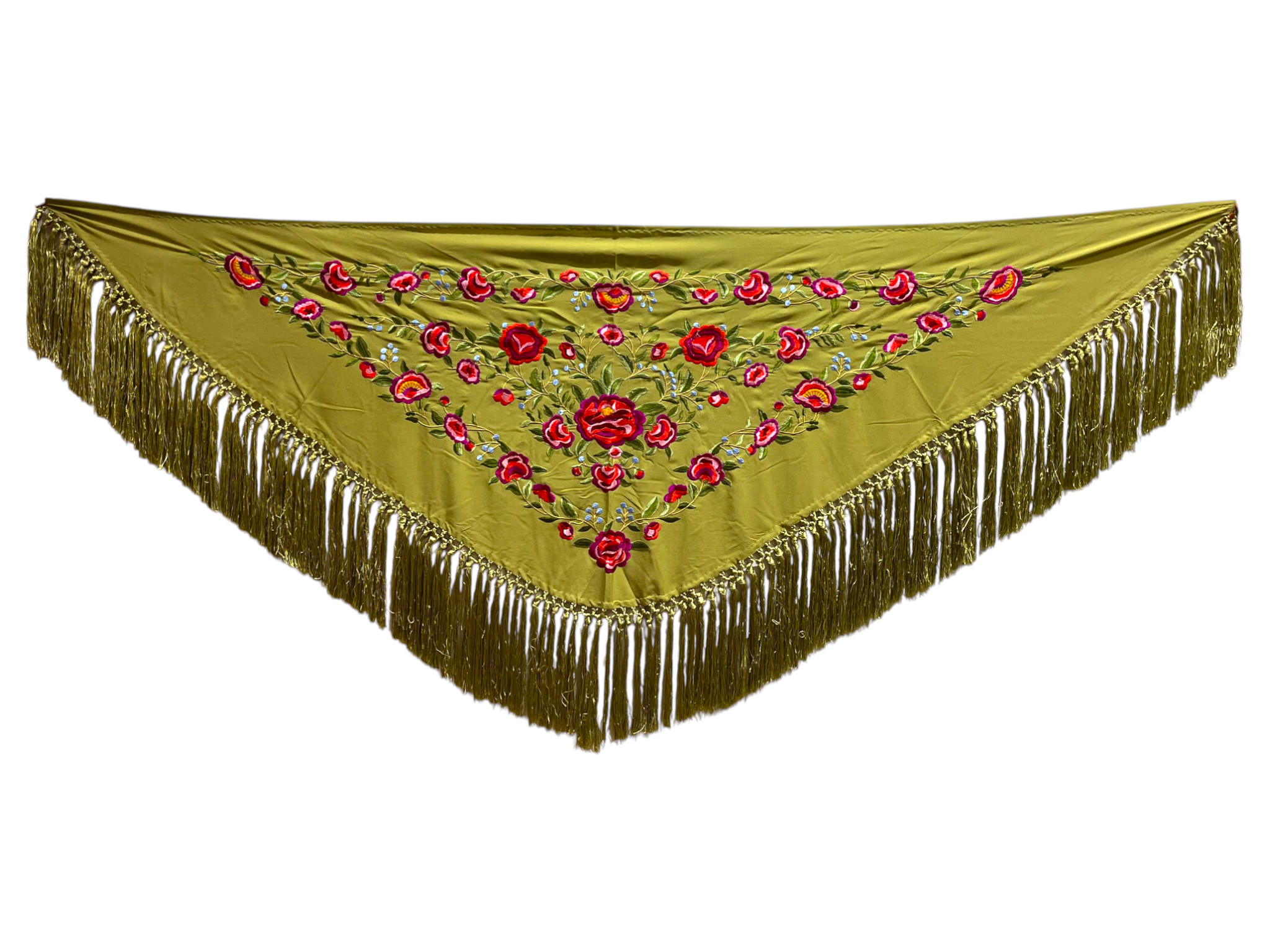 Está rematado con flecado de seda anudado a mano, que aporta movimiento, caída y un acabado tradicional de gran calidad. Fabricado íntegramente en España, es un mantoncillo económico, ideal tanto para feria, romerías, espectáculos o uso profesional.
