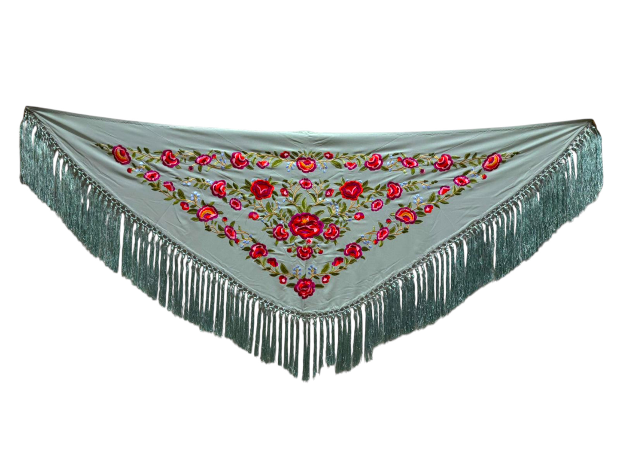 Mantoncillo bordado modelo Peonia Verde Jabonoso
