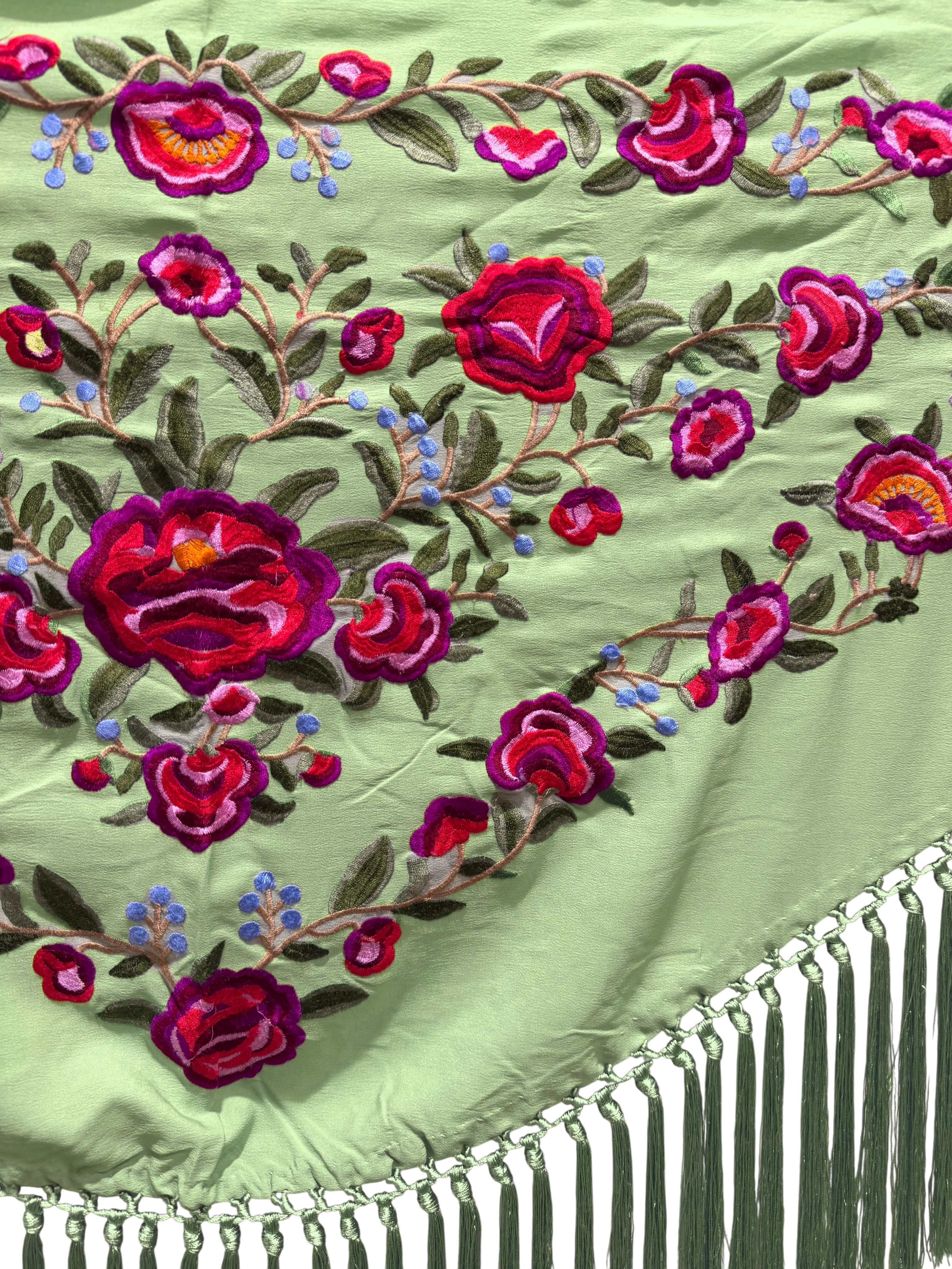 Mantoncillo bordado modelo Peonia Verde Lima