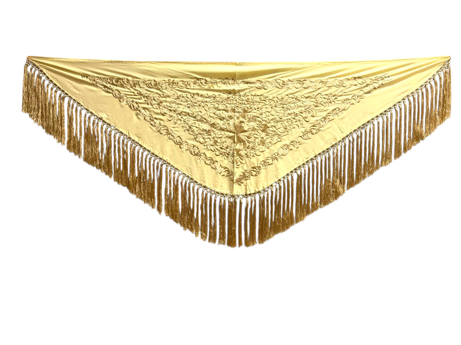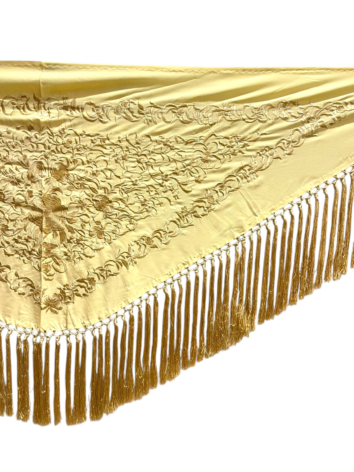 Está rematado con flecado de seda anudado a mano, que aporta movimiento, caída y un acabado tradicional de gran calidad. Fabricado íntegramente en España, es un mantoncillo económico que mantiene la esencia del complemento flamenco clásico.