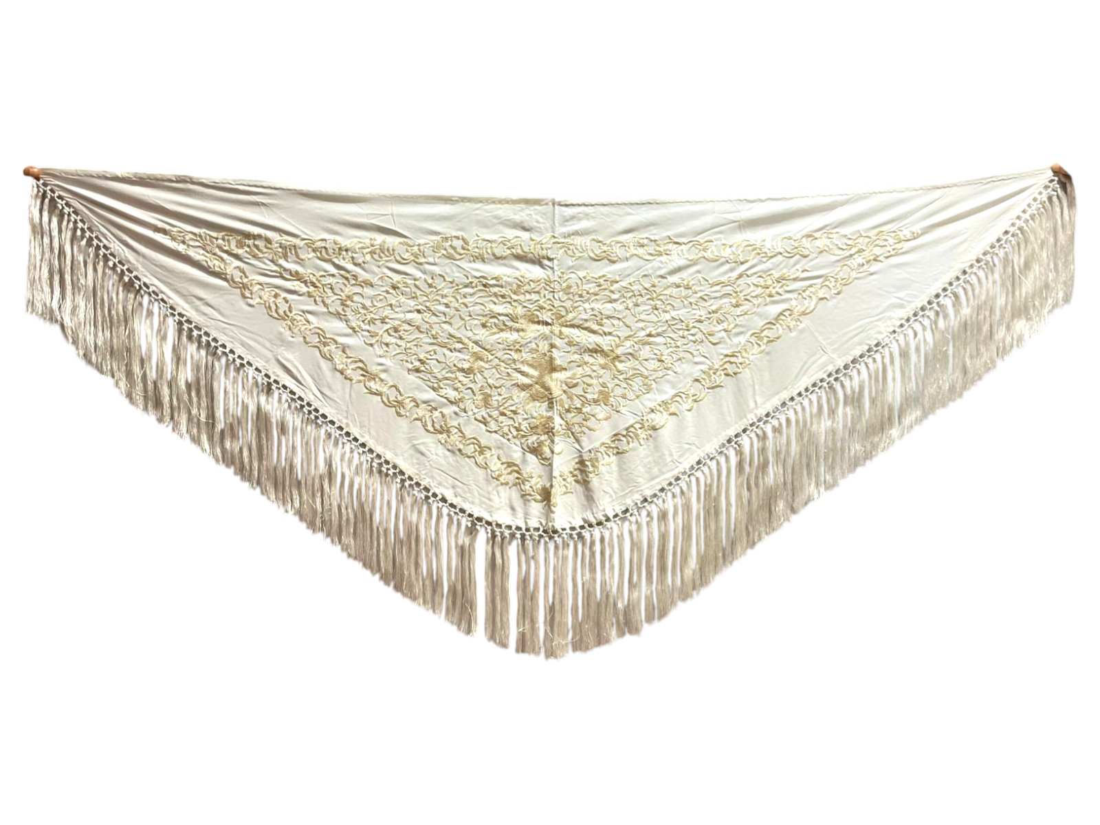 Está rematado con flecado de seda anudado a mano, que aporta movimiento, caída y un acabado tradicional de gran calidad. Fabricado íntegramente en España, es un mantoncillo económico que mantiene la esencia del complemento flamenco clásico.