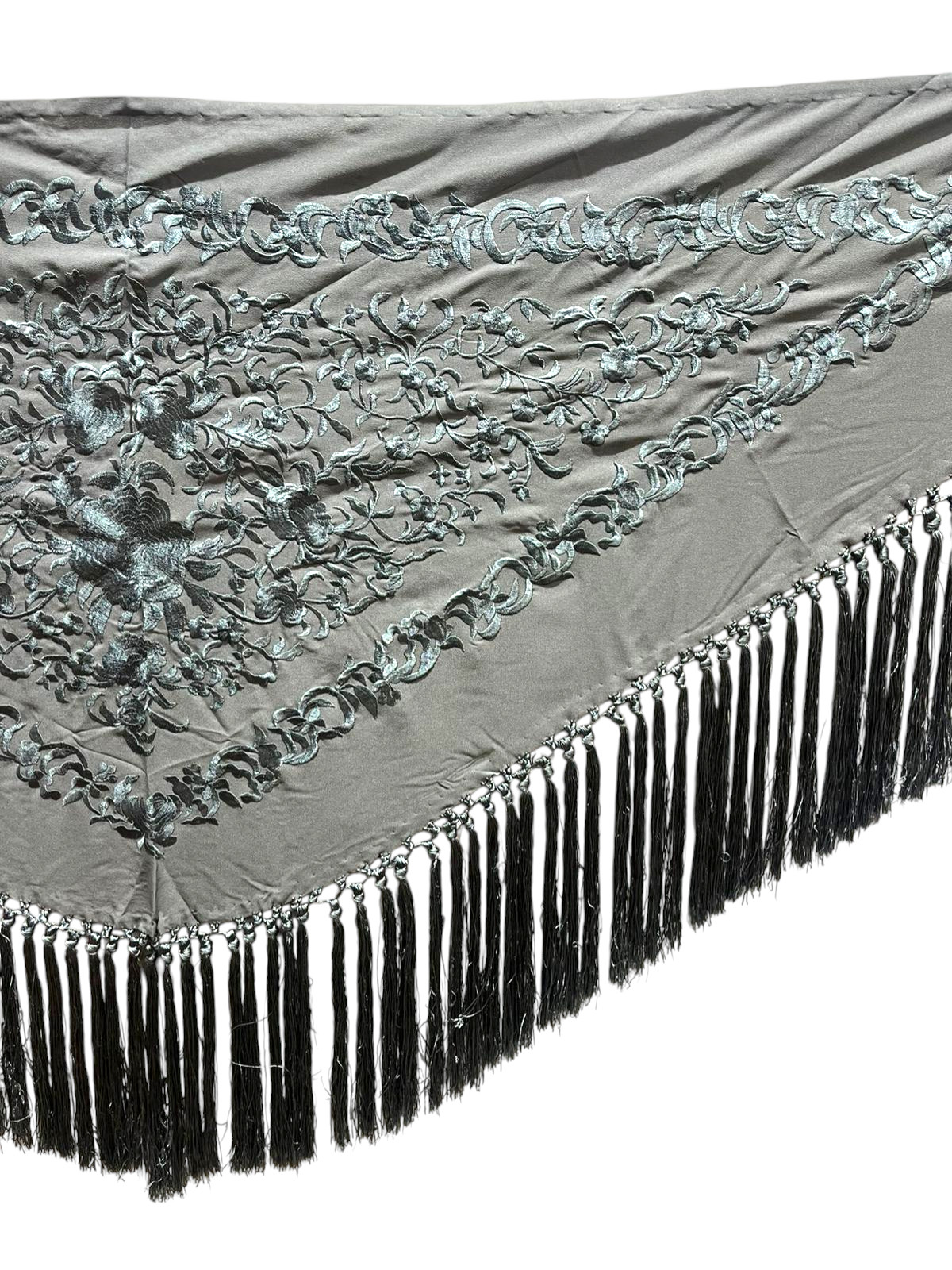 Está rematado con flecado de seda anudado a mano, que aporta movimiento, caída y un acabado tradicional de gran calidad. Fabricado íntegramente en España, es un mantoncillo económico que mantiene la esencia del complemento flamenco clásico.