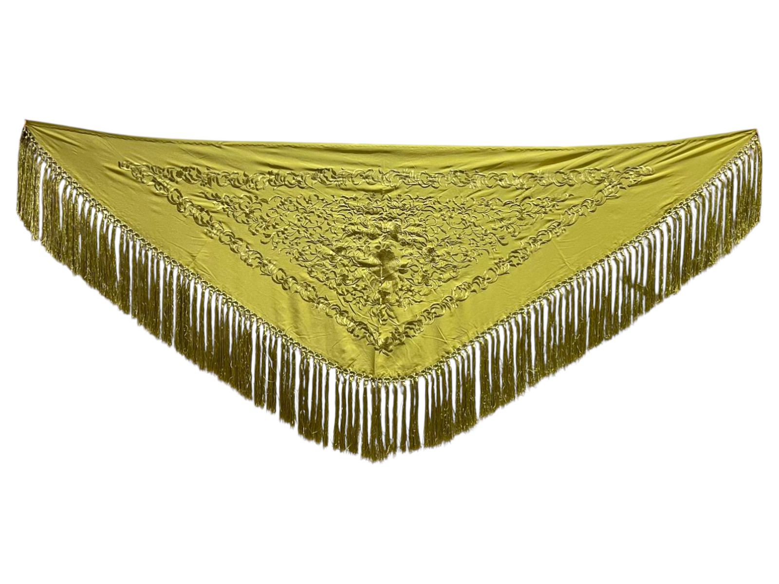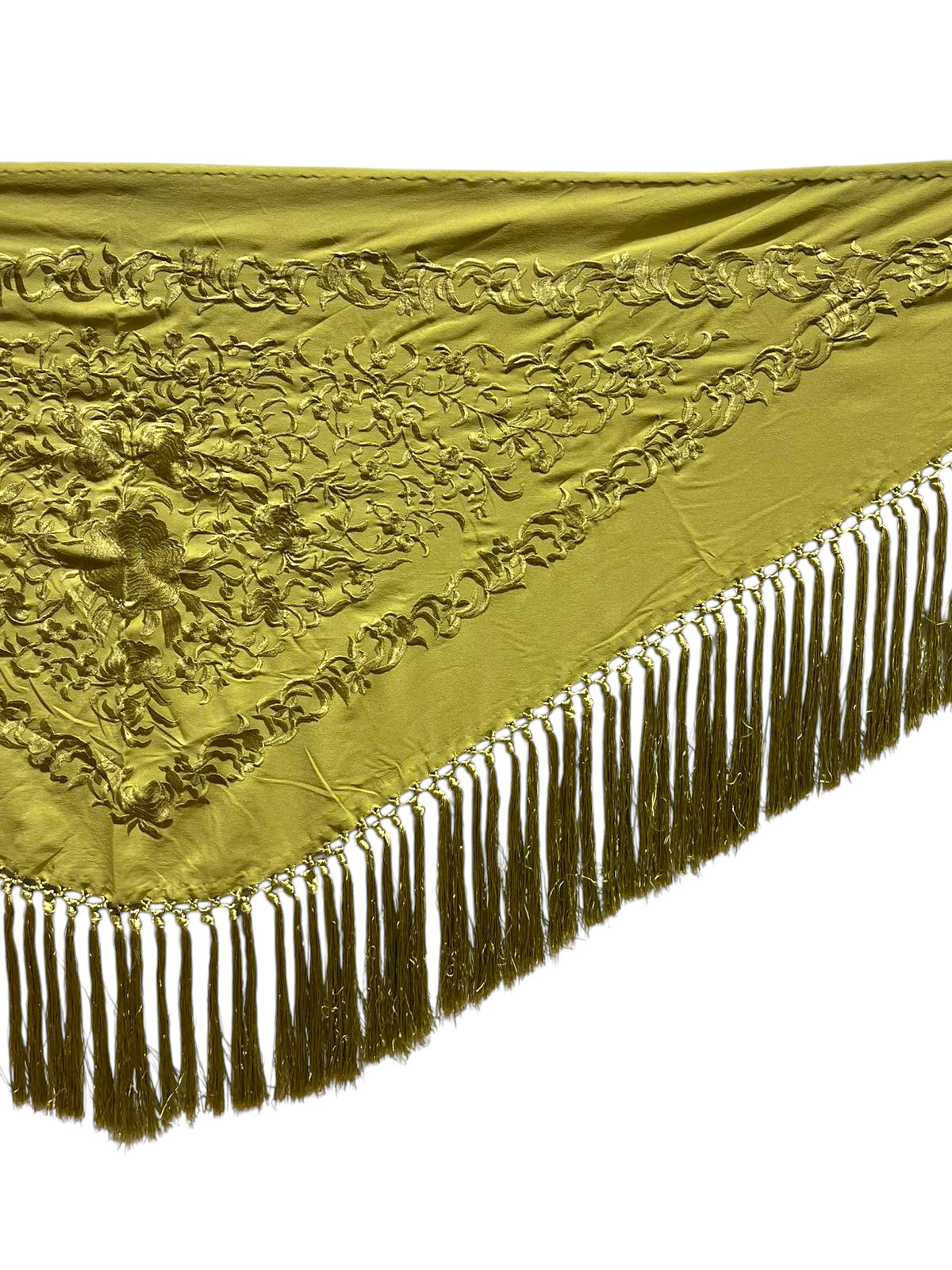 Está rematado con flecado de seda anudado a mano, que aporta movimiento, caída y un acabado tradicional de gran calidad. Fabricado íntegramente en España, es un mantoncillo económico que mantiene la esencia del complemento flamenco clásico.
