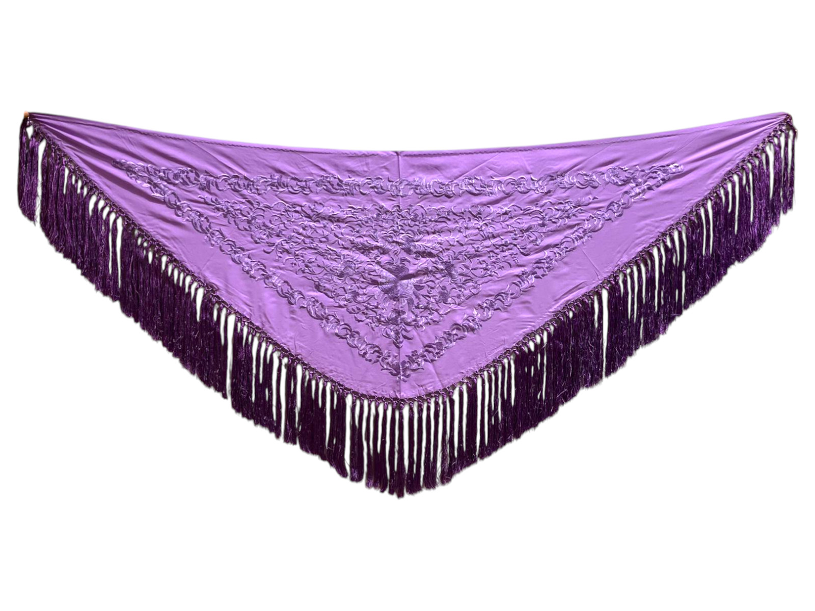 Está rematado con flecado de seda anudado a mano, que aporta movimiento, caída y un acabado tradicional de gran calidad. Fabricado íntegramente en España, es un mantoncillo económico que mantiene la esencia del complemento flamenco clásico.