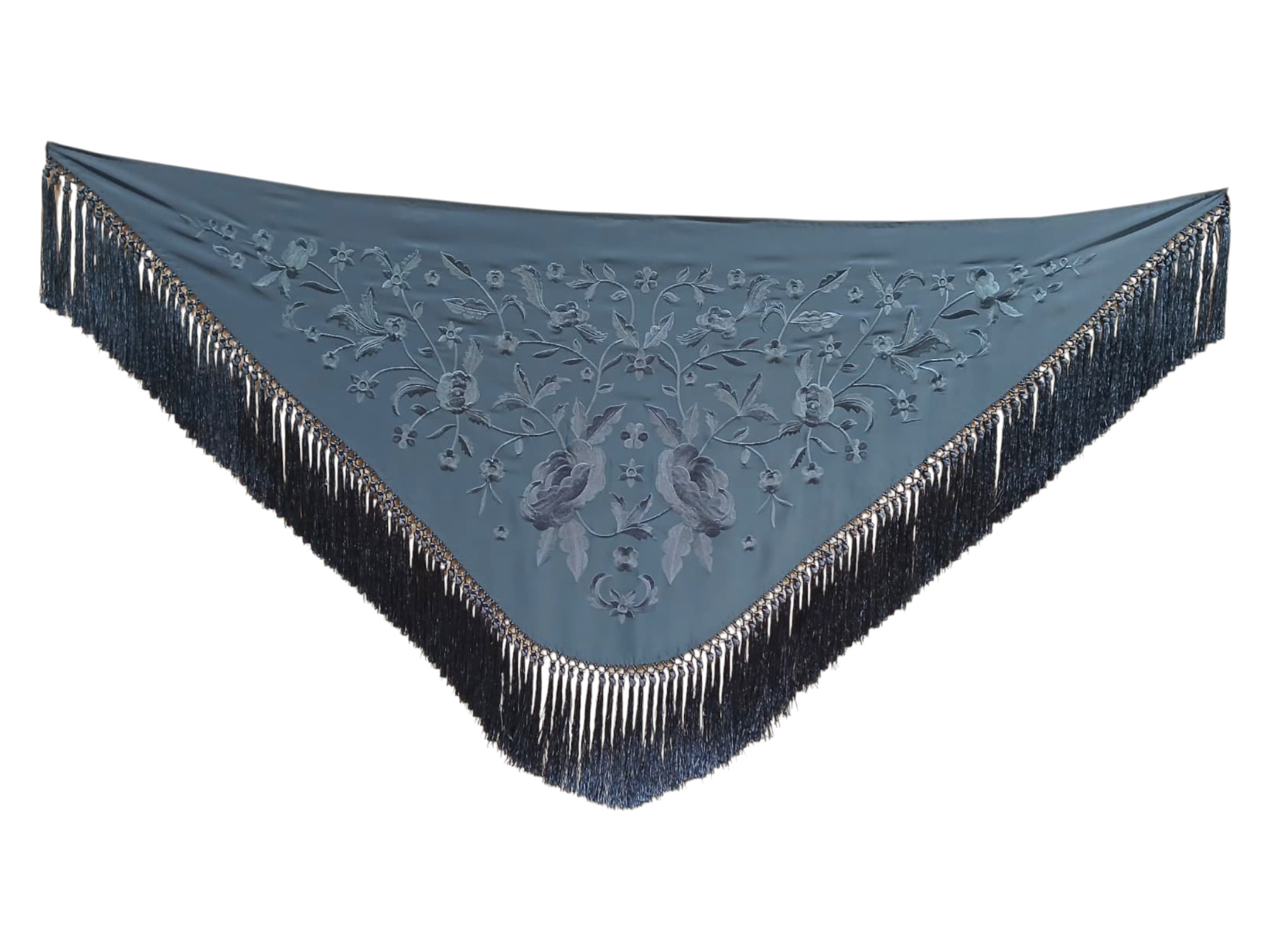 Mantoncillo de flamenca bordado con flecado a mano en seda