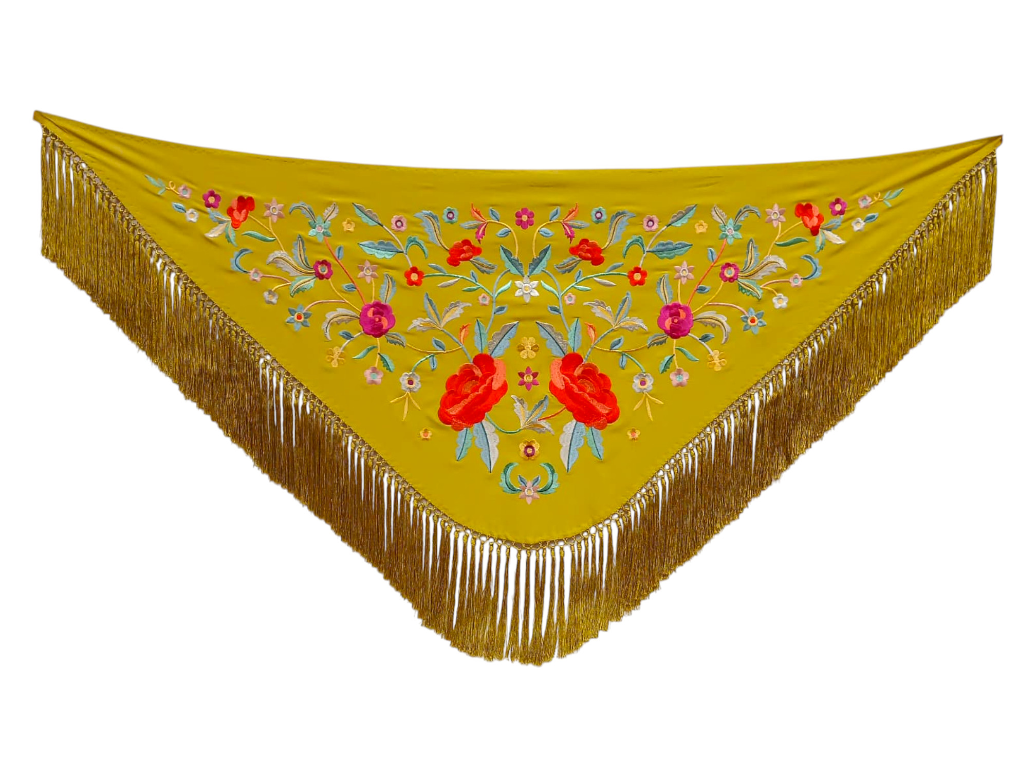 Cada modelo está bordado a máquina con diseños cuidadosamente trabajados que destacan por sus motivos florales, detalles clásicos y colores vibrantes. Disponemos de una enorme variedad de combinaciones de colores, desde los tonos más tradicionales hasta opciones modernas que combinan con cualquier traje o conjunto. Gracias a esta variedad, siempre encontrarás el mantoncillo perfecto para complementar tu traje de flamenca, vestido de fiesta o conjunto de invitada.