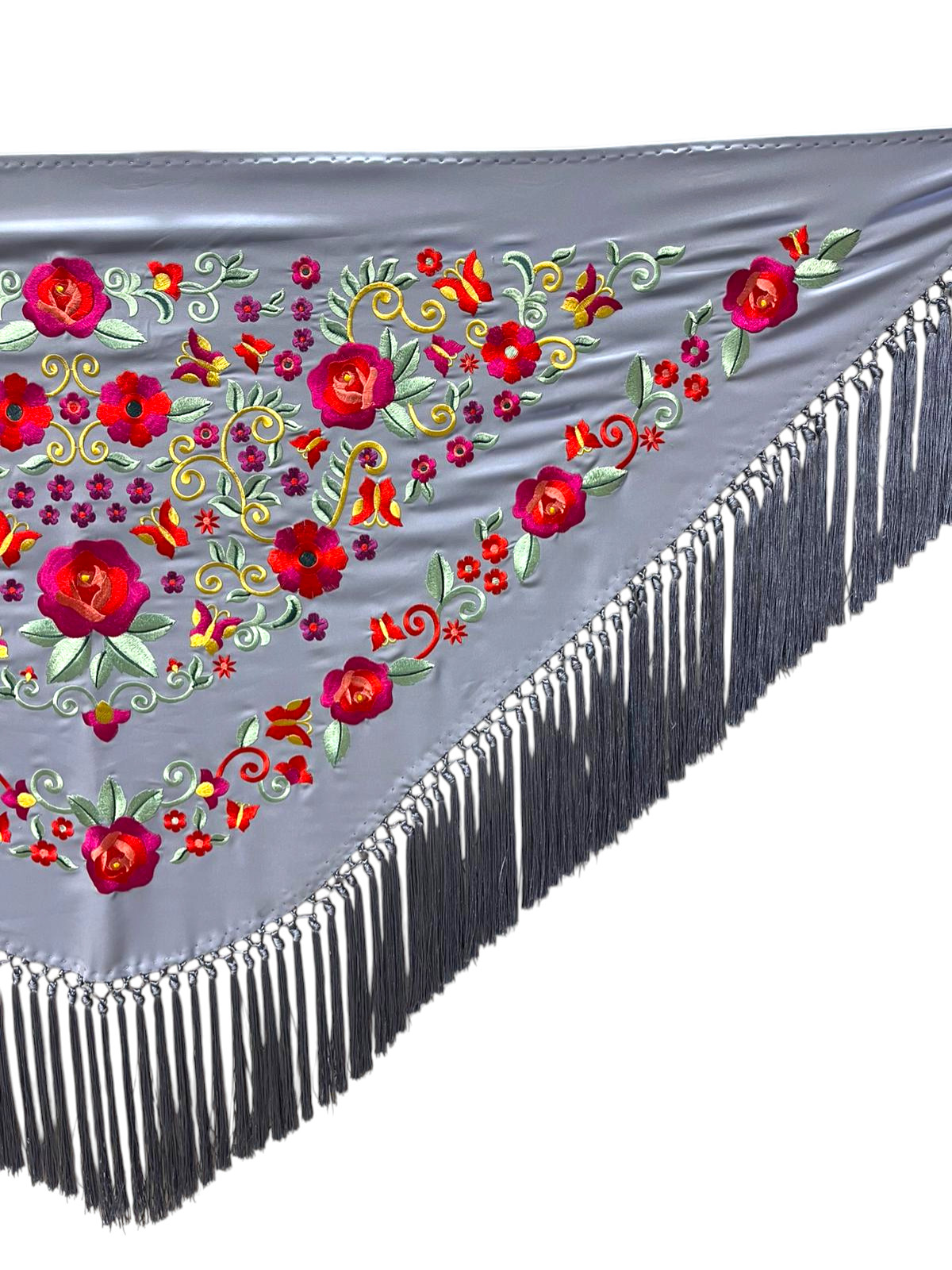 Cada modelo está bordado a máquina con diseños cuidadosamente trabajados que destacan por sus motivos florales, detalles clásicos y colores vibrantes. Disponemos de una enorme variedad de combinaciones de colores, desde los tonos más tradicionales hasta opciones modernas que combinan con cualquier traje o conjunto. Gracias a esta variedad, siempre encontrarás el mantoncillo perfecto para complementar tu traje de flamenca, vestido de fiesta o conjunto de invitada.