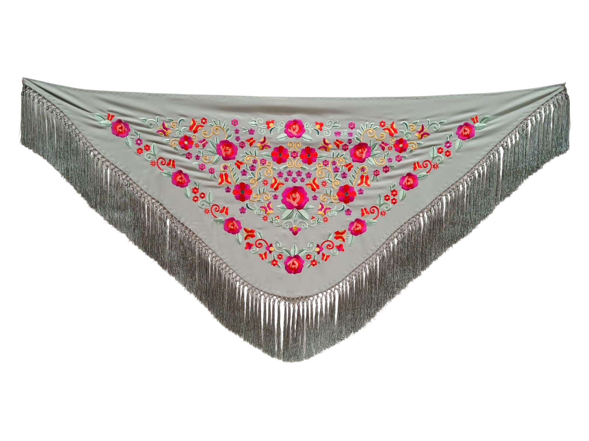 Cada modelo está bordado a máquina con diseños cuidadosamente trabajados que destacan por sus motivos florales, detalles clásicos y colores vibrantes. Disponemos de una enorme variedad de combinaciones de colores, desde los tonos más tradicionales hasta opciones modernas que combinan con cualquier traje o conjunto. Gracias a esta variedad, siempre encontrarás el mantoncillo perfecto para complementar tu traje de flamenca, vestido de fiesta o conjunto de invitada.