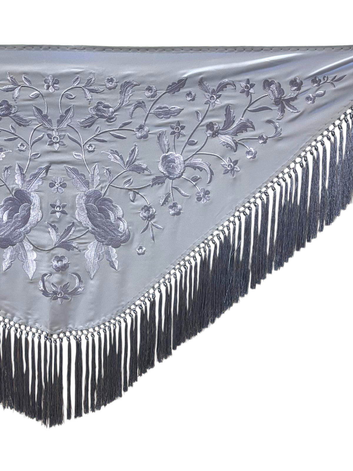 Mantoncillo de flamenca bordado con flecado a mano en seda