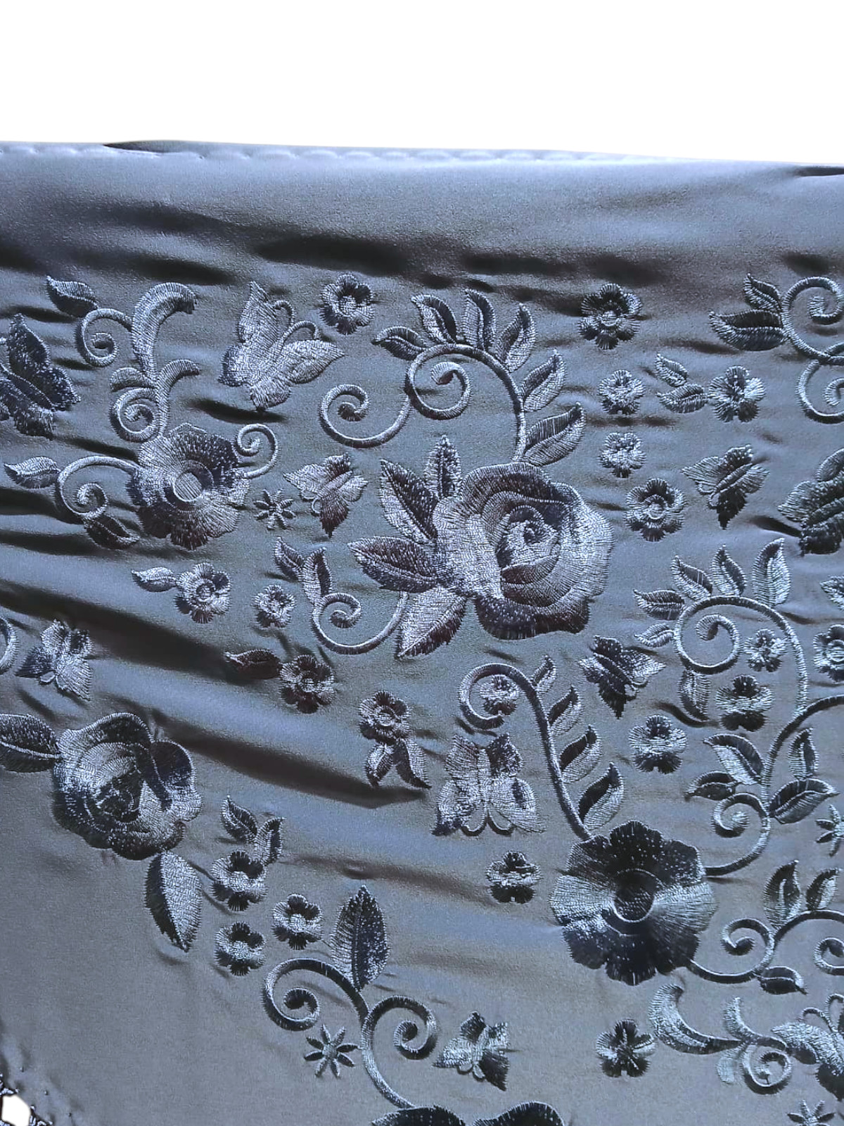 Cada modelo está bordado a máquina con diseños cuidadosamente trabajados que destacan por sus motivos florales, detalles clásicos y colores vibrantes. Disponemos de una enorme variedad de combinaciones de colores, desde los tonos más tradicionales hasta opciones modernas que combinan con cualquier traje o conjunto. Gracias a esta variedad, siempre encontrarás el mantoncillo perfecto para complementar tu traje de flamenca, vestido de fiesta o conjunto de invitada.