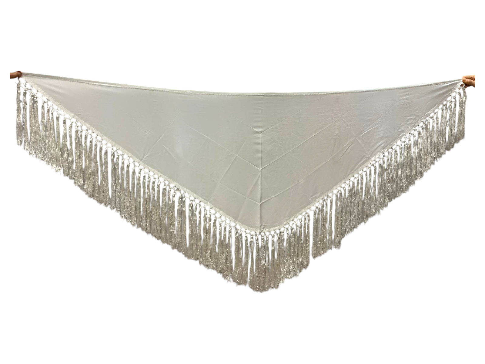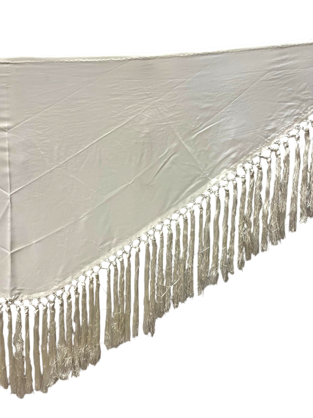 Mantoncillo liso de crespón y fleco de seda Blanco