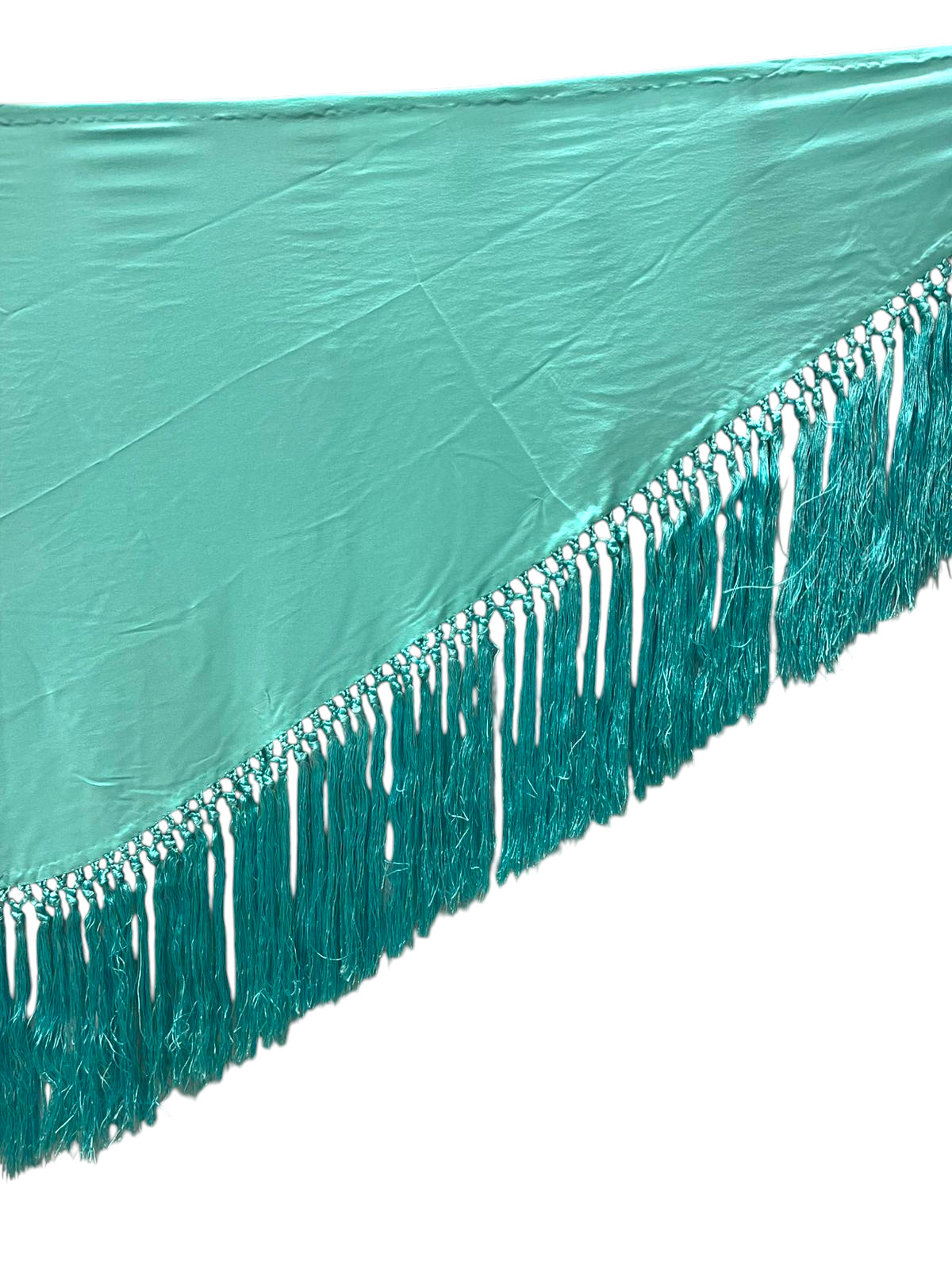 Mantoncillo liso de crespón y fleco de seda Turquesa