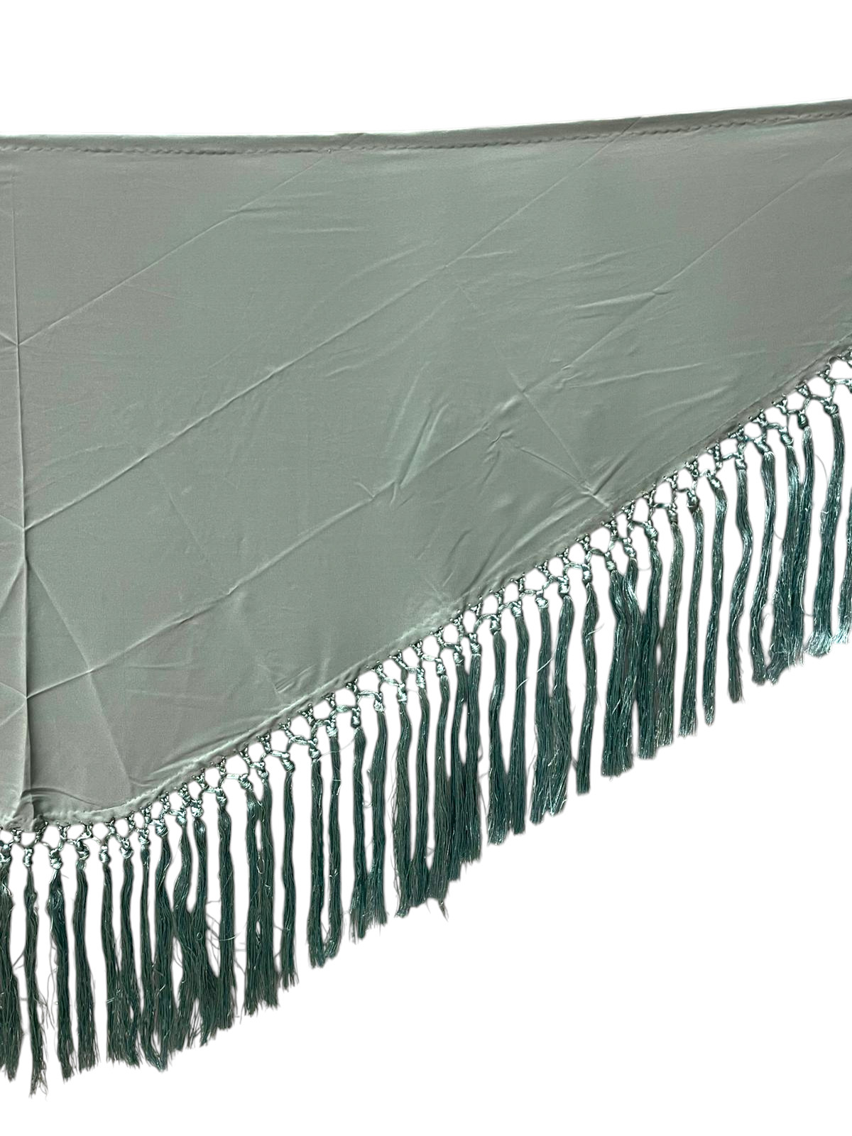 Mantoncillo liso de crespón y fleco de seda Verde Jabonoso