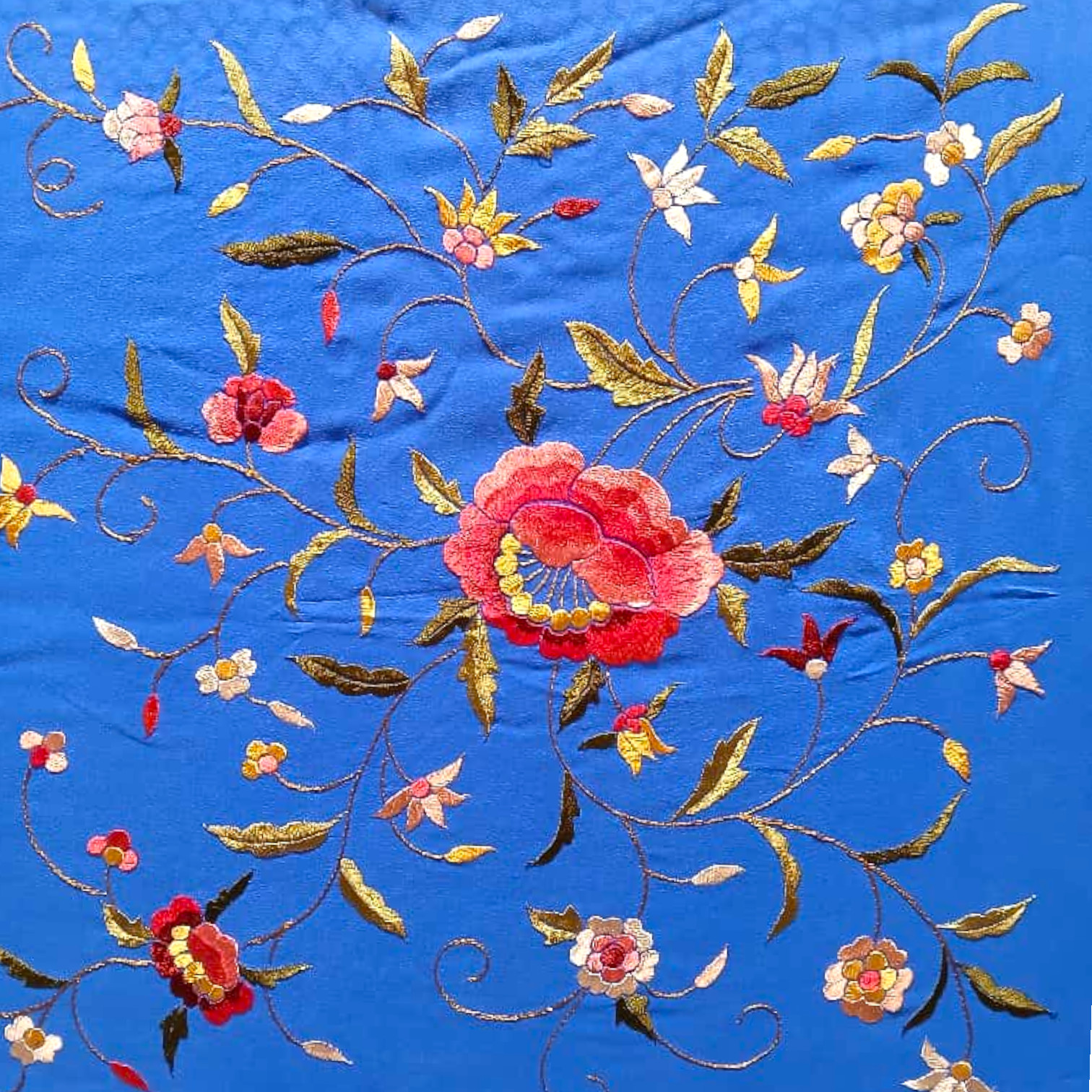 Todos los mantones están realizados sobre auténtica seda natural, puntada a puntada, con todo el cariño que nuestras