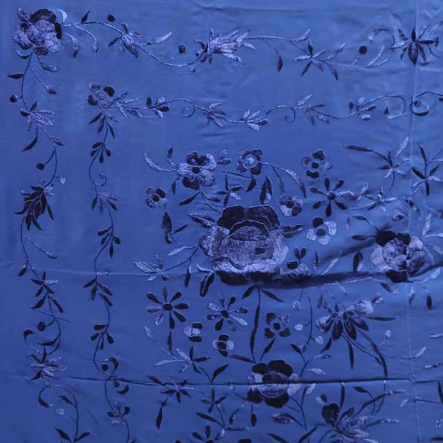 Manton de Seda Natural Bordado a Mano. Ref. 1010612AZLMRN