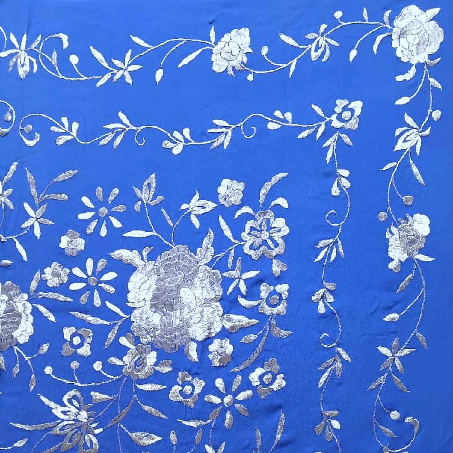 Manton de Seda Natural Bordado a Mano. Ref. 1010612AZLNPLT