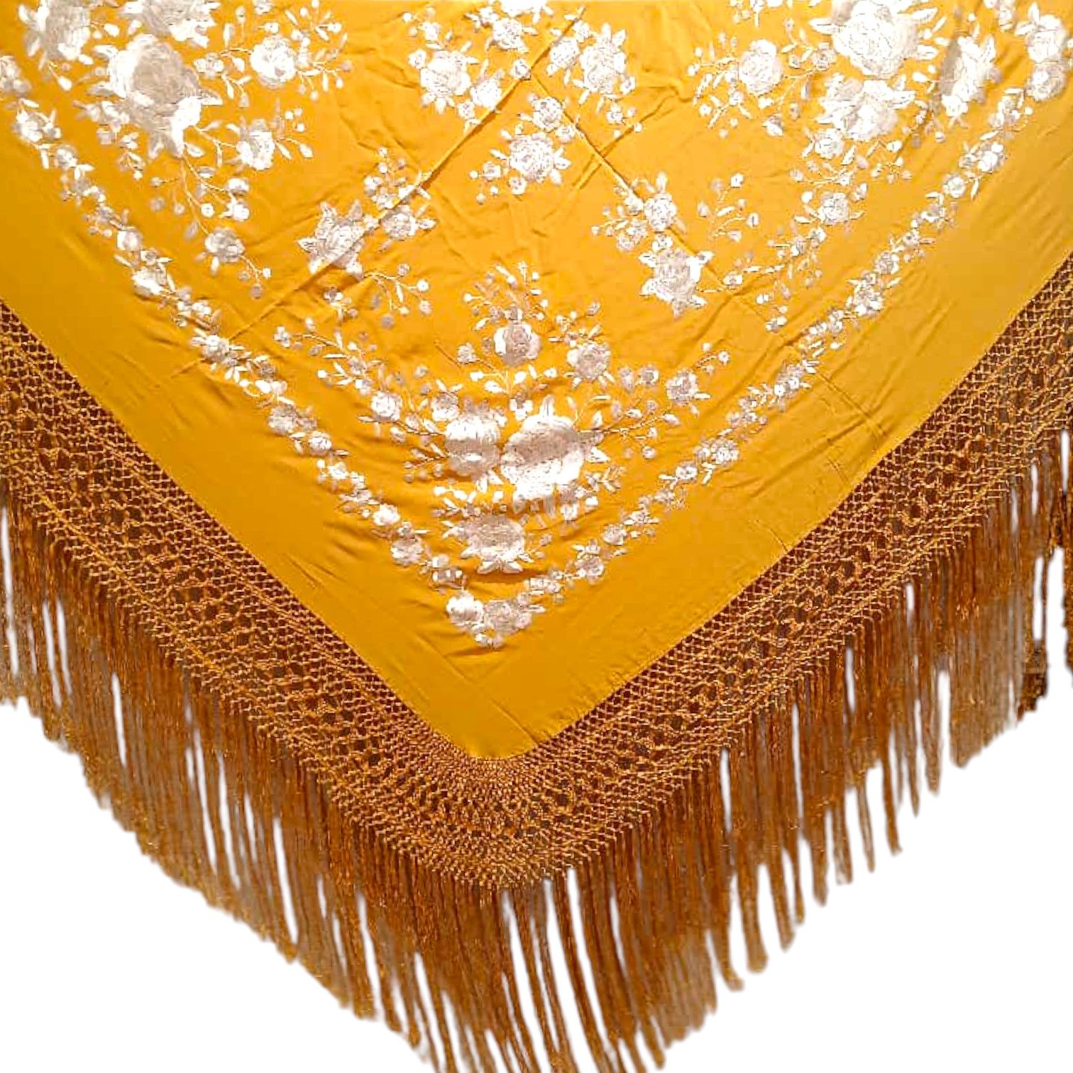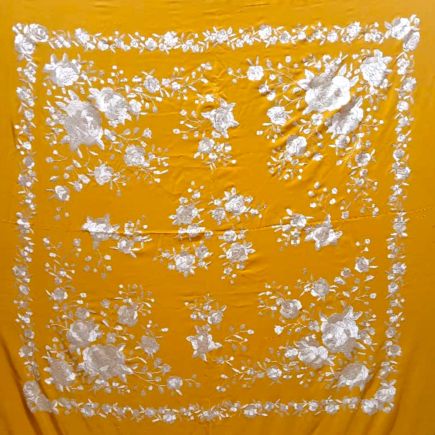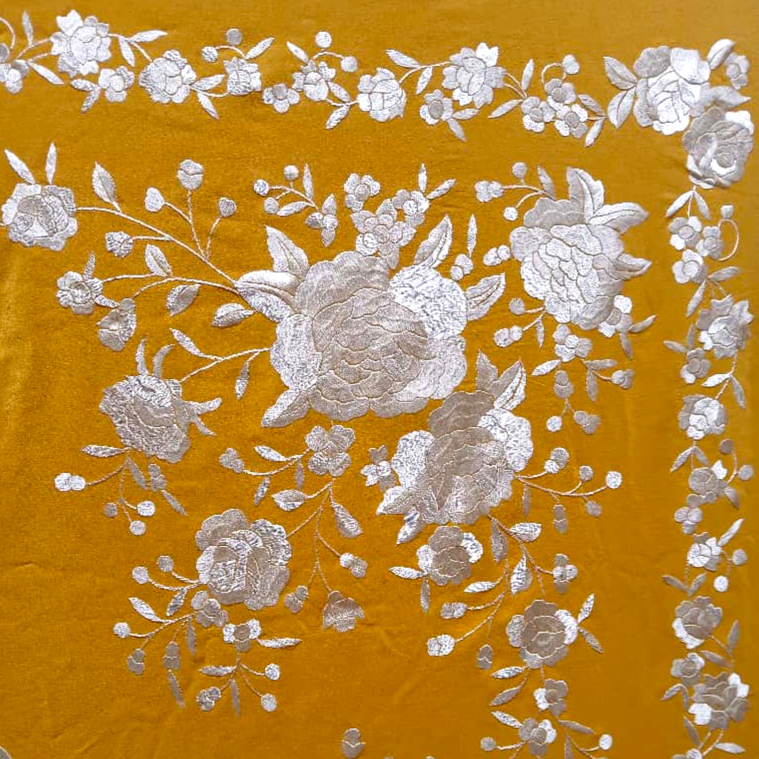 Todos los mantones están realizados sobre auténtica seda natural, puntada a puntada, con todo el cariño que nuestras