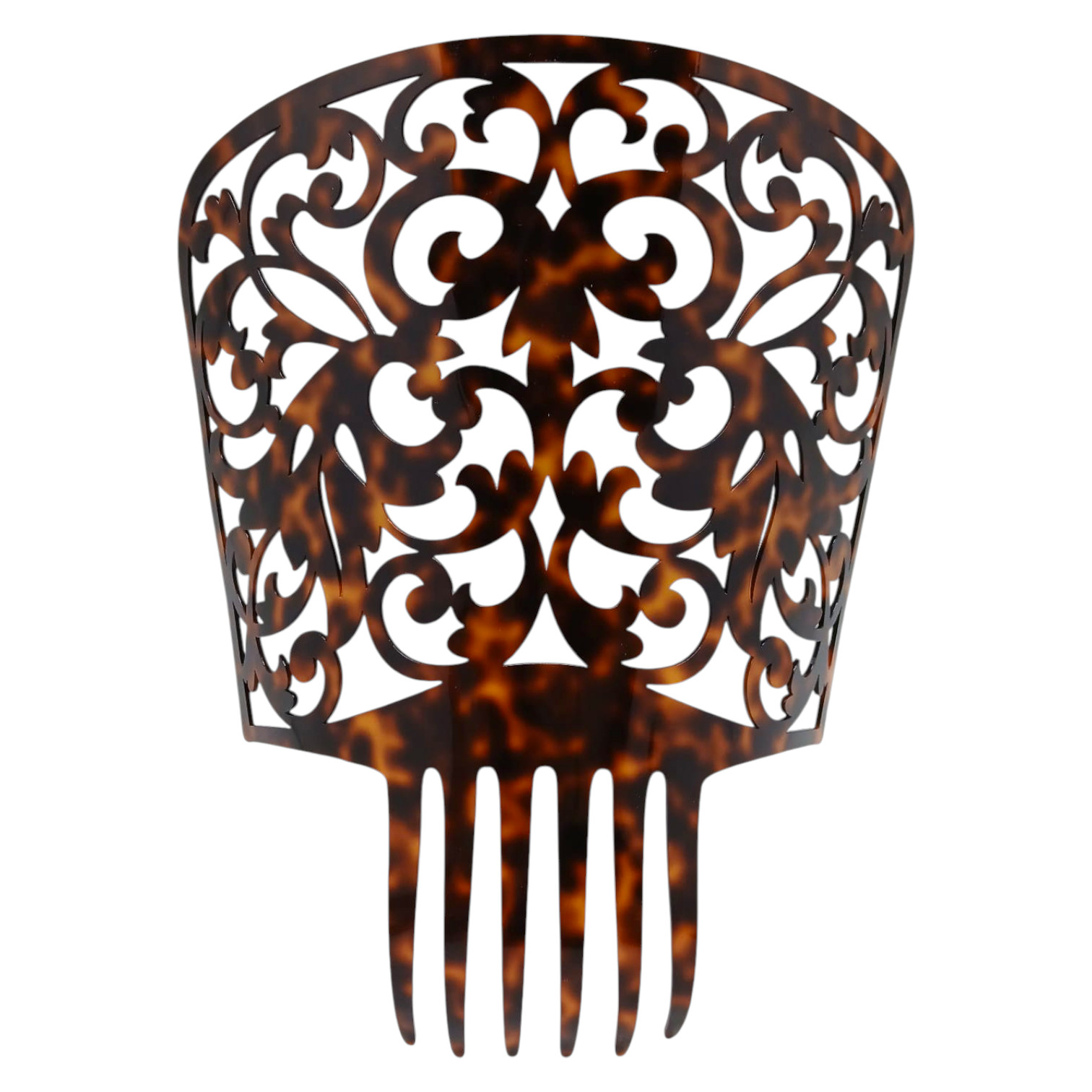 Realza tu estilo con esta peineta color carey de líneas suaves y forma cuadrada. Su acabado elegante y favorecedor combina a la perfección con mantillas y recogidos tradicionales. Ideal para ceremonias y actos religiosos.