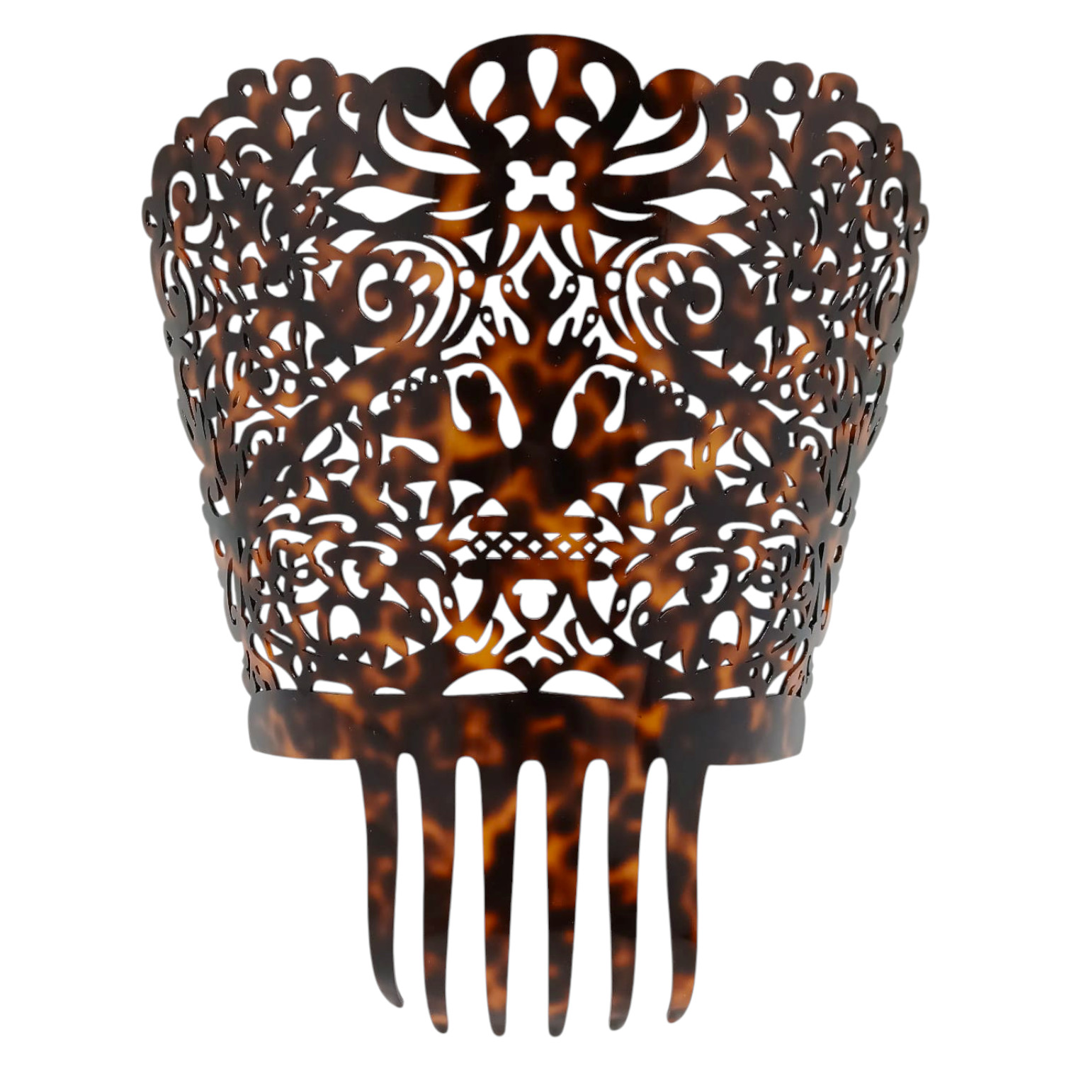 Descubre la peineta de color carey con forma cuadrada y bordes redondeados. Un diseño clásico que realza cualquier rostro y luce espectacular con mantilla. Perfecta para bodas, Semana Santa y eventos solemnes.