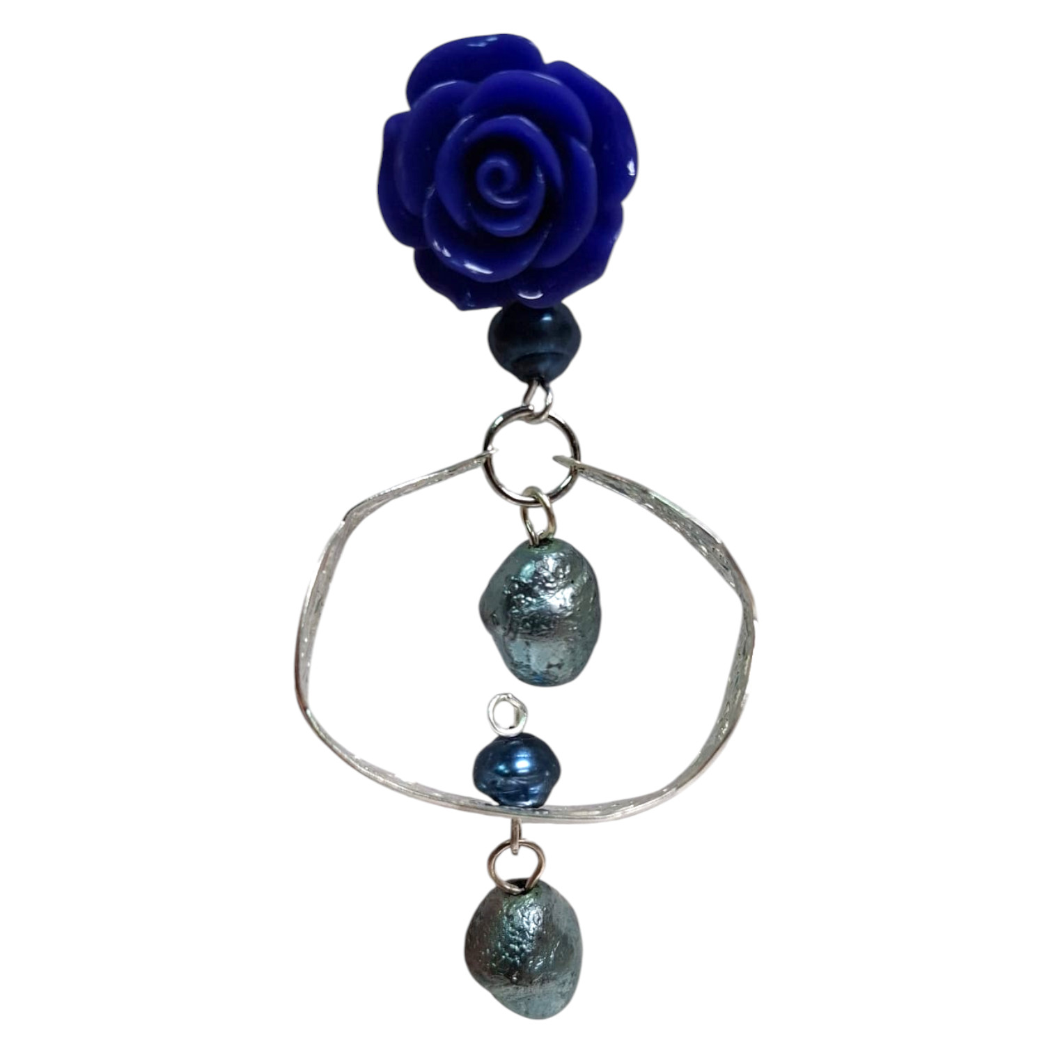 Pendientes Artesanales Flamenca con Diseño Floral Acabado Plateado y Detalles Azulón