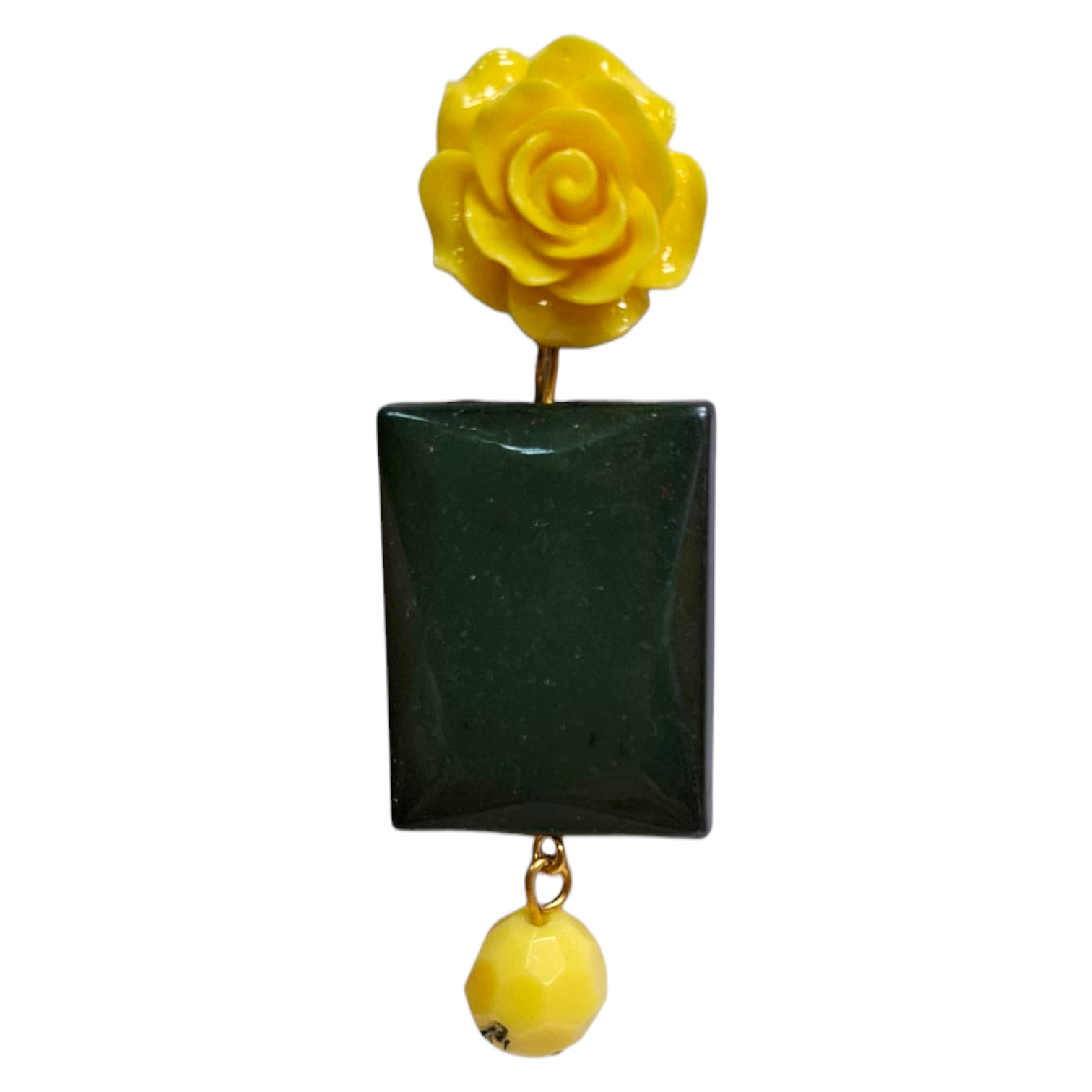 Descubre estos pendientes de flamenca con flor y piedra acrílica rectangular, diseñados para complementar tu look en ferias y romerías. Hechos a mano en Sevilla, combinan tradición y tendencia en una pieza ligera y llamativa.