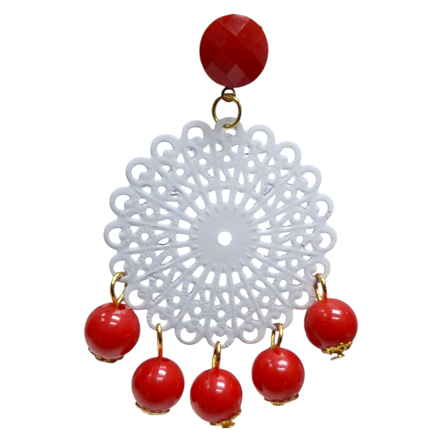 Pendientes de Flamenca con Filigrana Metálica Redonda y 5 Bolitas Colgantes. Hechos en Sevilla
