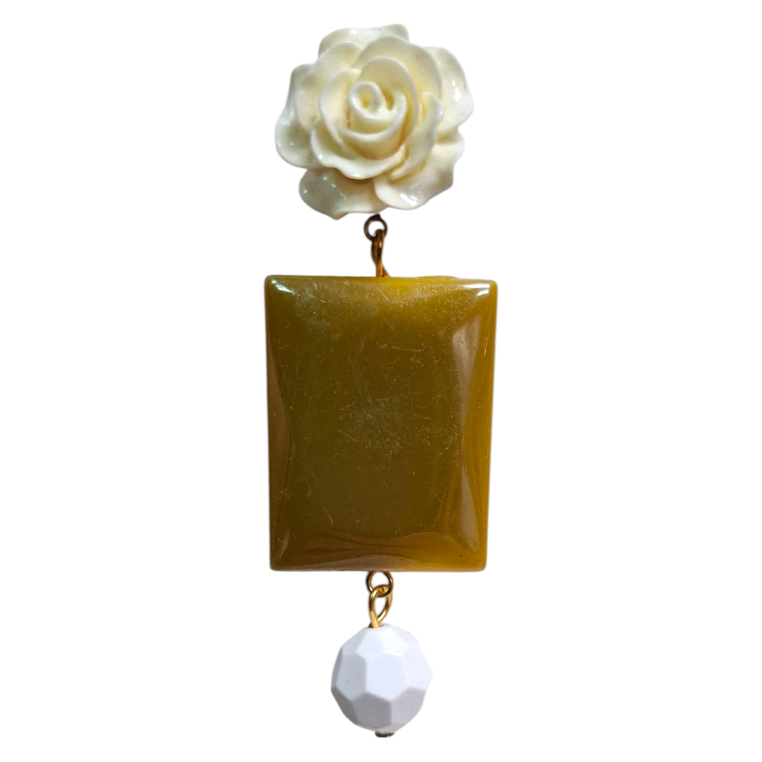 Realza tu outfit flamenco con estos pendientes con flor y piedra acrílica rectangular. Diseñados y hechos a mano en Sevilla, son perfectos para ferias, romerías y eventos especiales. Un complemento imprescindible con estilo tradicional y moderno.