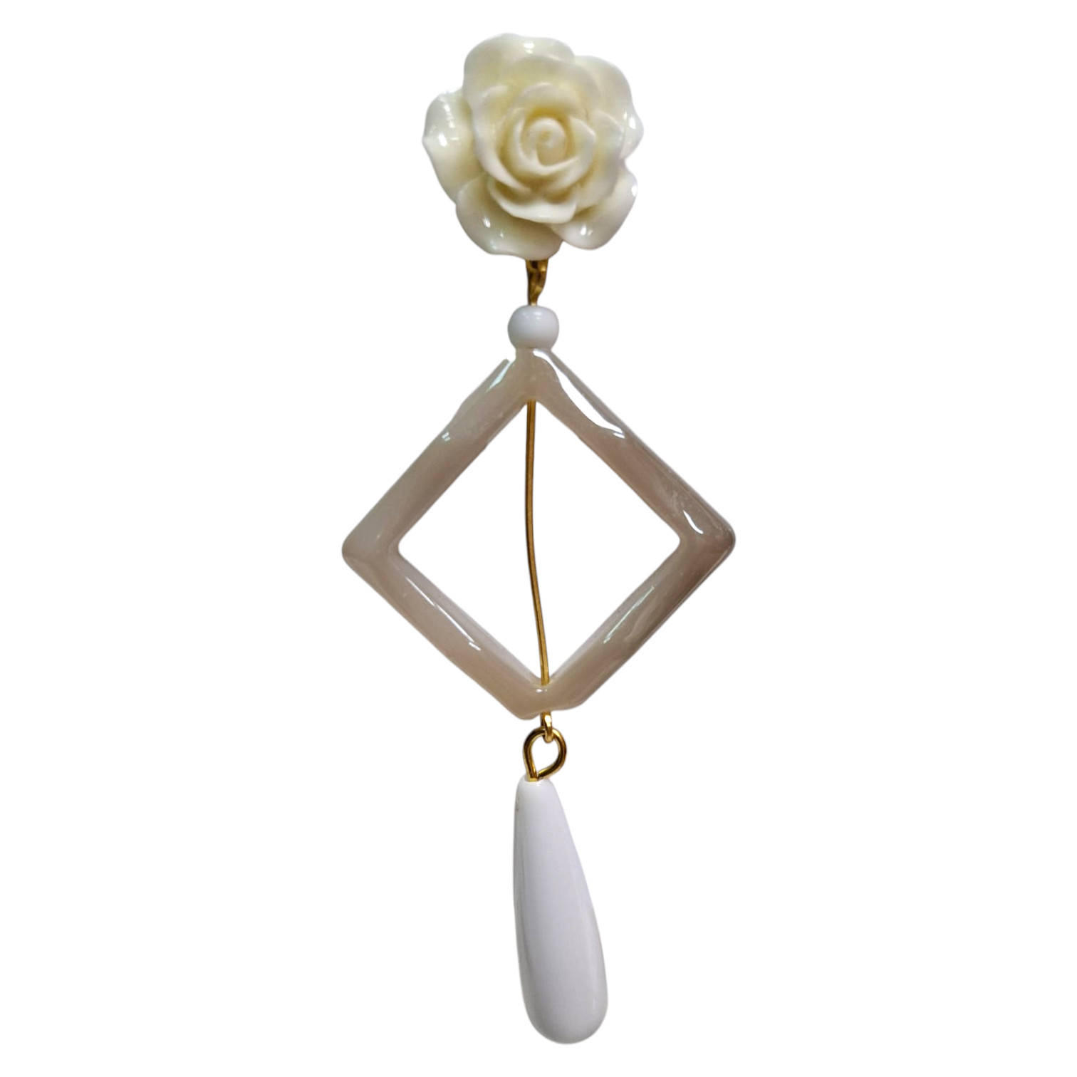 Pendientes de Flamenca de Rombo con Rosa y lágrima. Bisutería Artesanal Sevillana para Feria