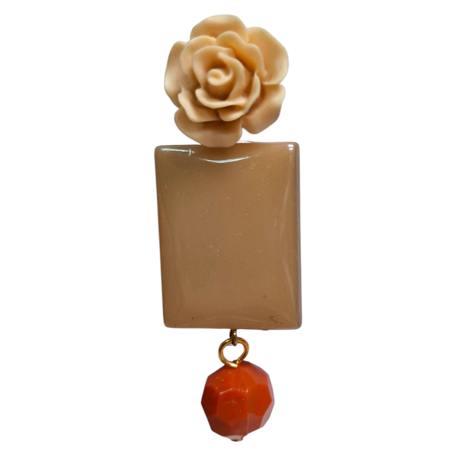 Pendientes de flamenca elegantes con flor y piedra acrílica rectangular, perfectos para feria y romerías. Fabricados artesanalmente en Sevilla, destacan por su calidad, diseño exclusivo y estilo tradicional andaluz.