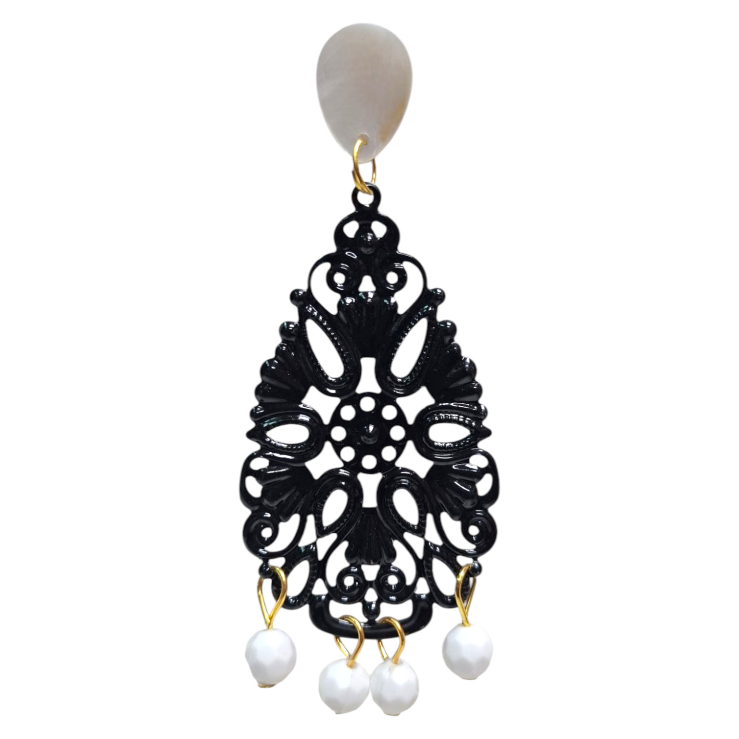 Pendientes flamencos artesanales con pieza ovalada de filigrana y bolitas, un diseño clásico que nunca pasa de moda. Perfectos para complementar trajes de flamenca y looks de feria. Elaborados en Sevilla (España), con acabados de calidad.